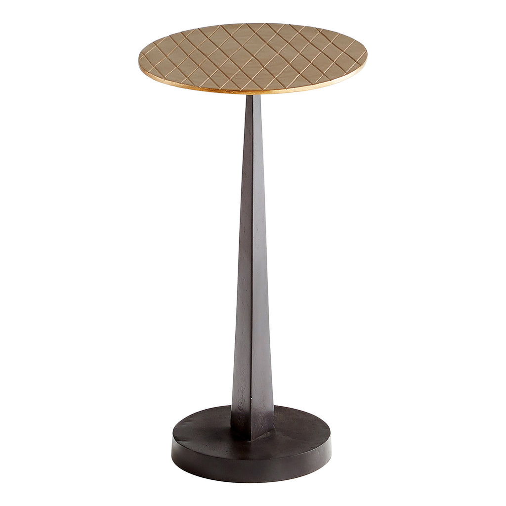 Whether placed next to a sofa or positioned between two accent chairs, the Cyan Design Beauvais drinks table is a handy touch for rounding out any living ensemble in style. The modish-industrial design is a sleek option in any space, its crafted from a circular aluminum, with a faux cross-hatched surface founded on a sweepingly curved pedestal base for a touch of transitional, eclectic-inspired glamour. A modern combination of Aged Brass and Black round this piece out with an added industrial touch.