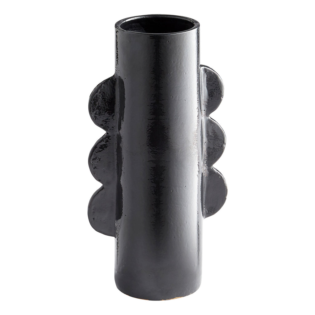 This artisan crafted terracotta vase collection features a rustic glazed Black finish, with an abstract form influenced by ancient Native American pottery. A cylindrical design with a muted totem pole design, the Cyan Design Potteri vase collection is the perfect addition to any subdued organic ensemble, or boho-chic arrangement. Potteri collection vases shown are sold separately.