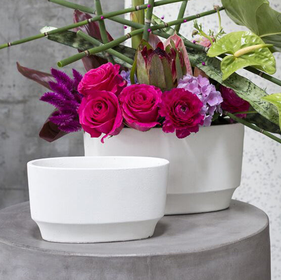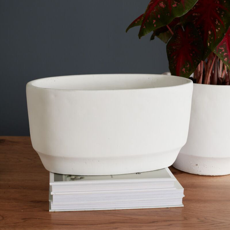 Clean and versatile white cement pot can be used indoors or outdoors.