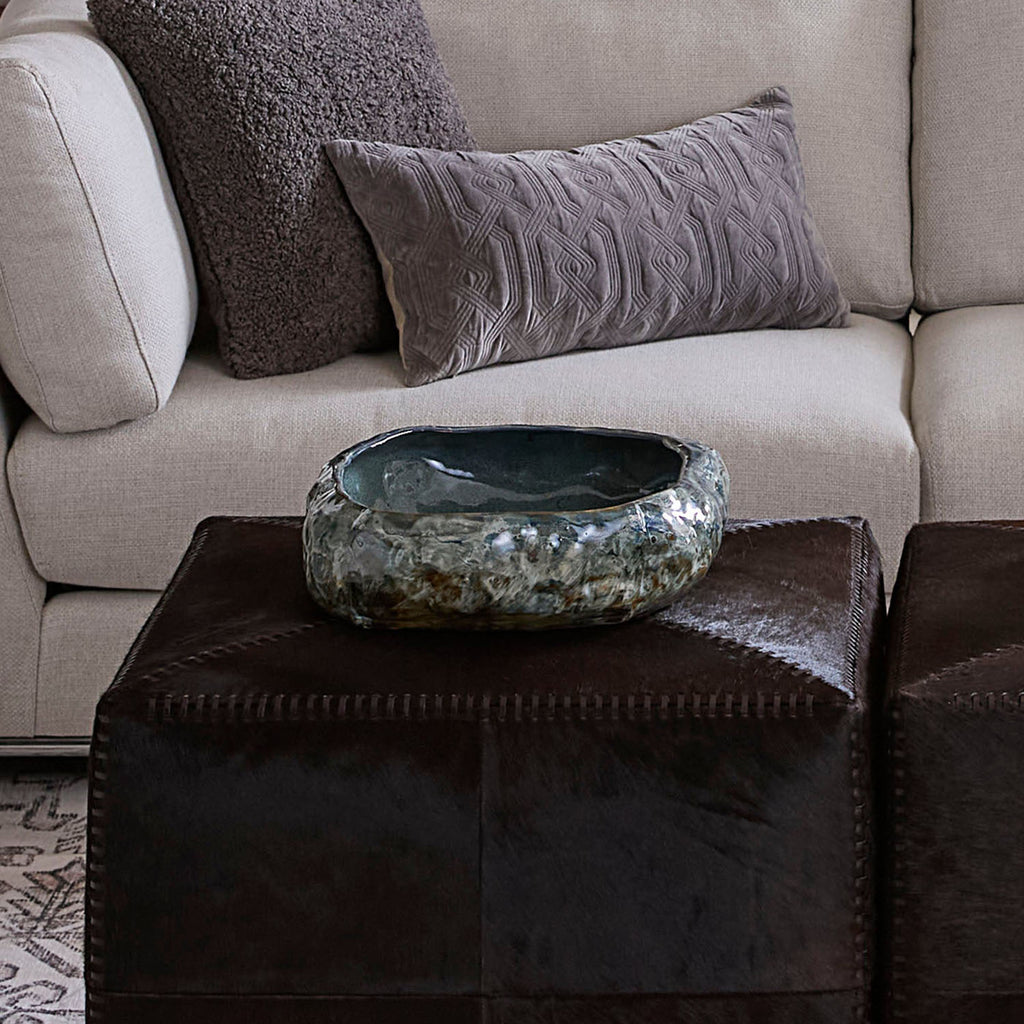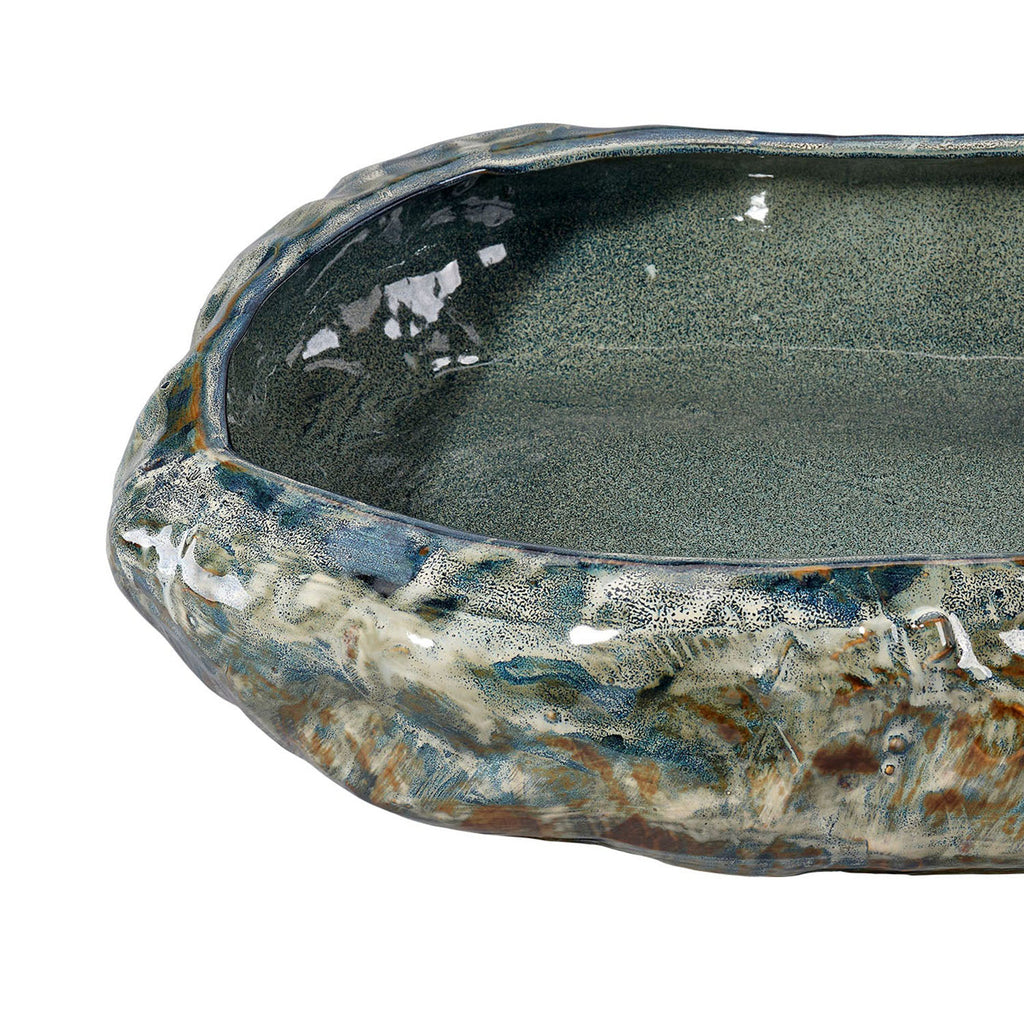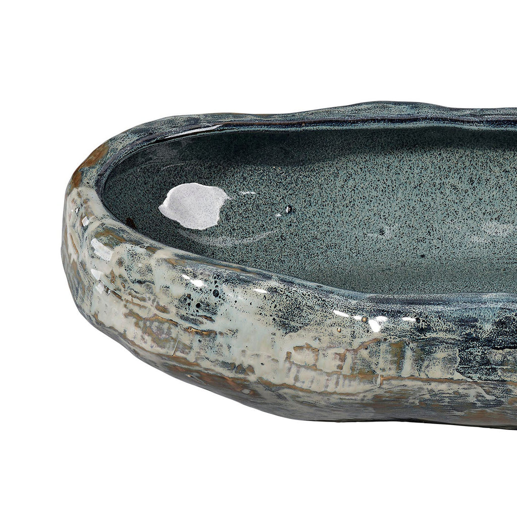 Artisans enhance the organic lines of these handcrafted ceramic bowls with a captivating finish. The reactive glazing and expert antiquing techniques create a look reminiscent of ancient, unearthed treasures. The meticulous processes ensure that each bowl is a unique work of art, with no two being identical.