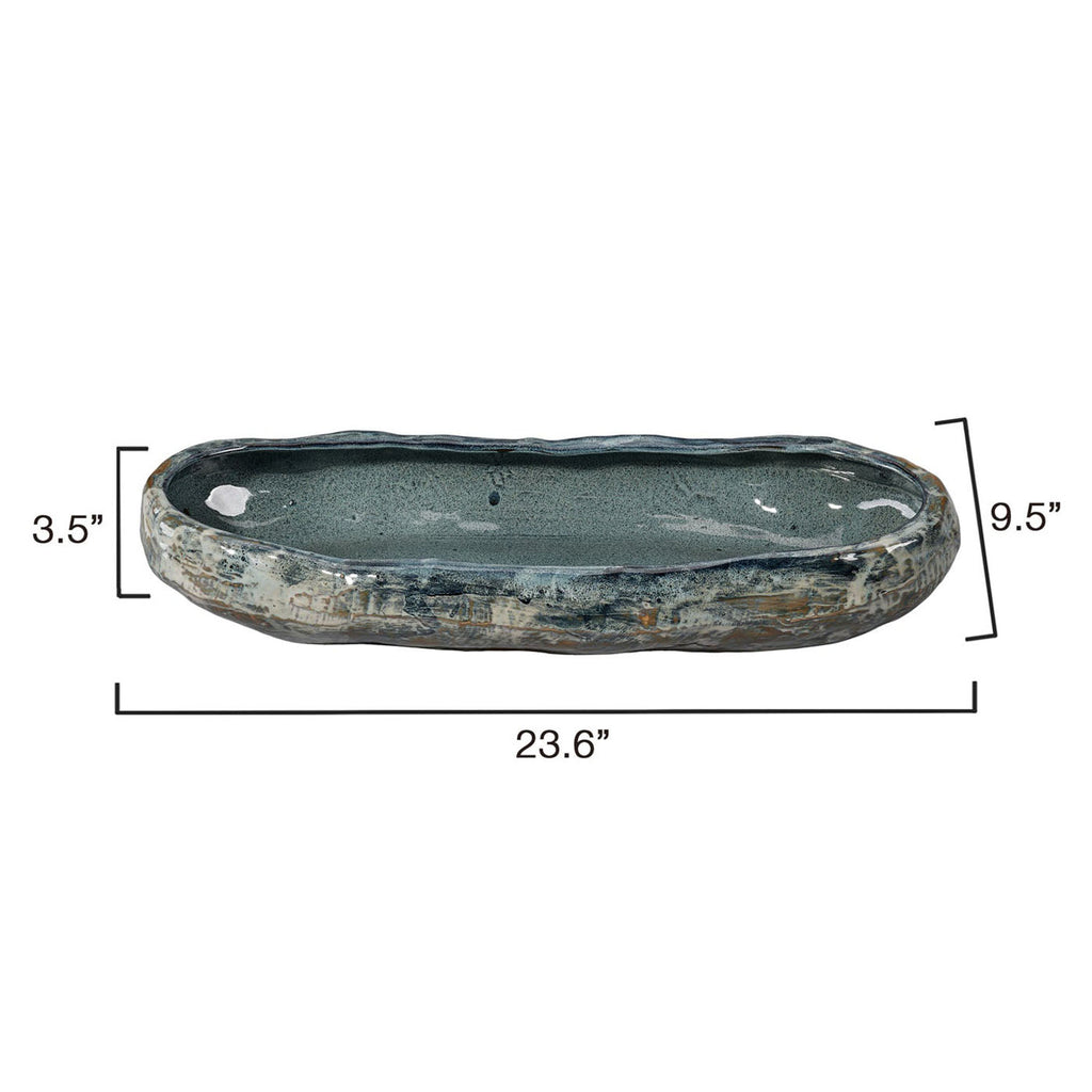 • Oval: 23.5in W x 9.5in D x 3.5in H or Round: 16.5in W x 14.5in D x 3.5in H