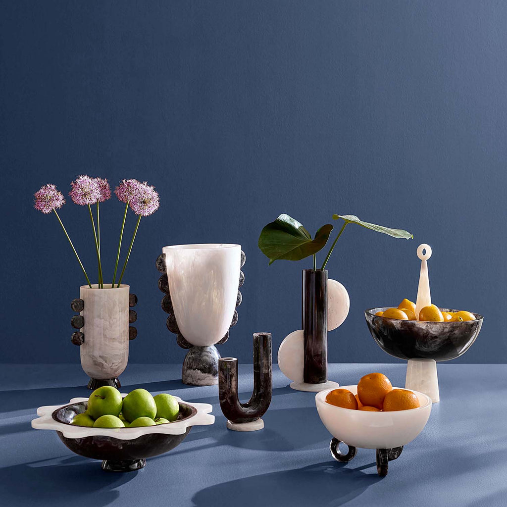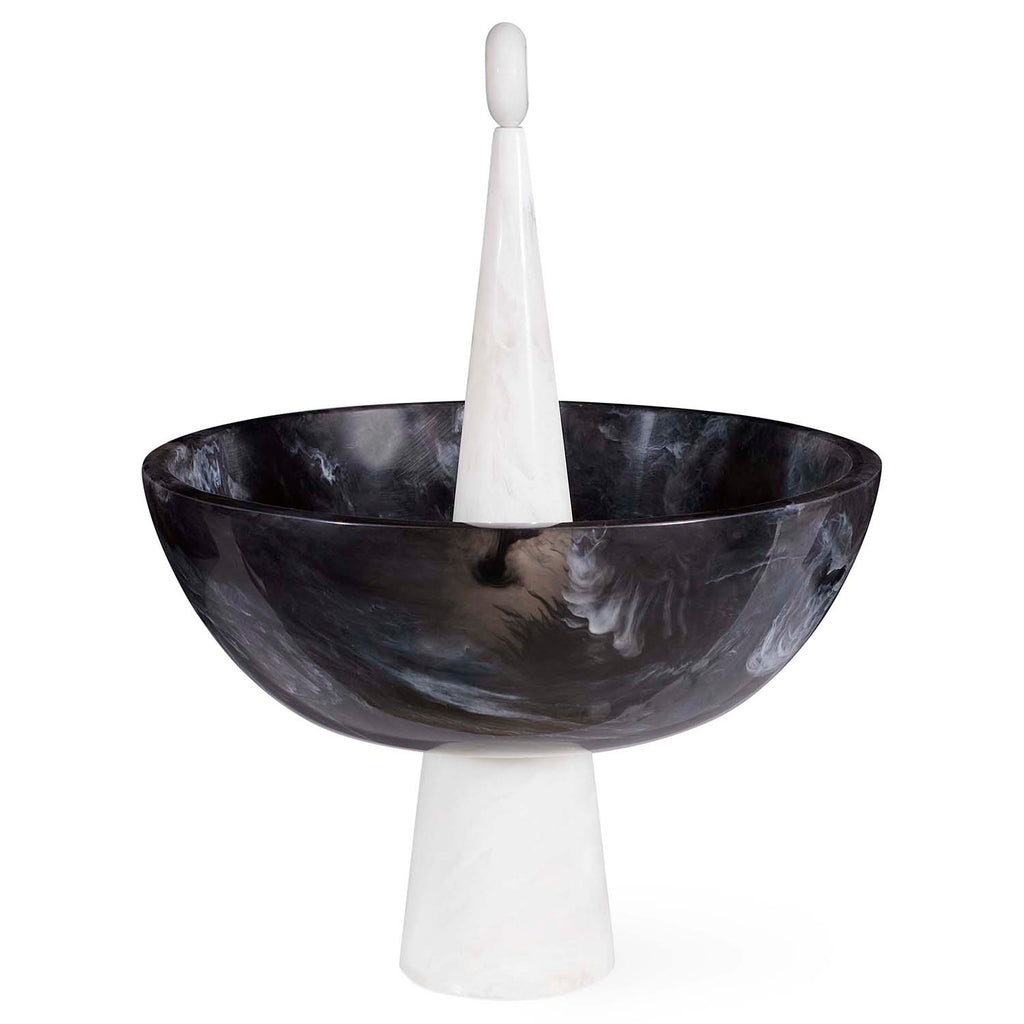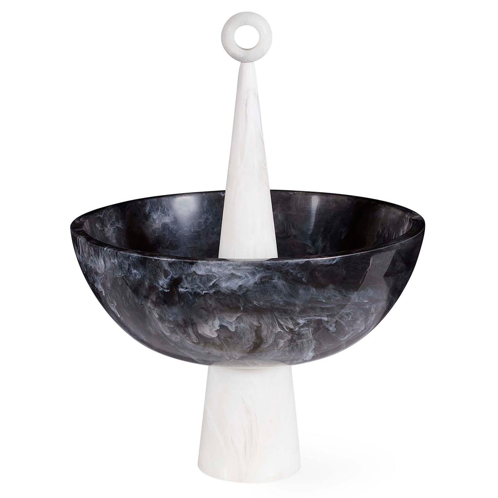 The mesmerizing twist on classic black and white that every modern tablescape needs. Fabulous filled with fruit and just as attention-getting without. Our Mustique vessels pair dimensional tones with bold Memphis-y geometrics. Each piece is hand-poured to create a unique marbleized finish, then polished to luminous perfection. Style them together to create a monumental moment.