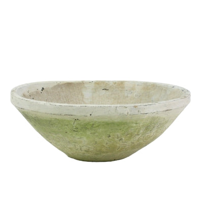 This rustic terra cotta bowl is given its unique character by using a centuries old, handmade process using canvas lined molds and traditionally fired kilns then rubbed by hand with dried moss and let to sit outdoors to naturally age which gives it a one-of-a-kind natural patina. Each piece is distressed using old clay to add texture and individually handled so natural ware such as gentle chips and variation in color are to be expected and embraced. This Terra Cotta Bowl does not have a drainage hole.