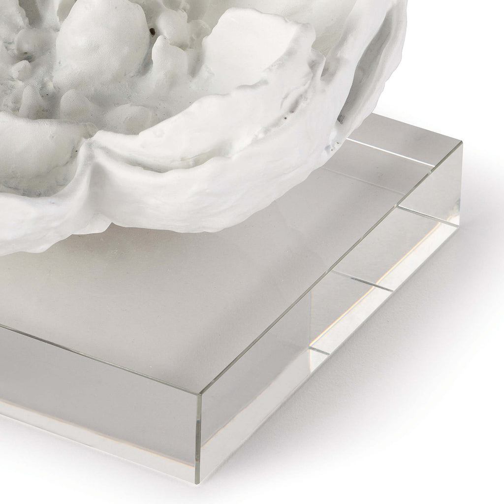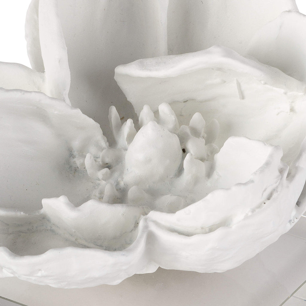 A beautiful magnolia cast in bloom brightens up your living room. Its white finish and acrylic pedestal base take it into contemporary territory.