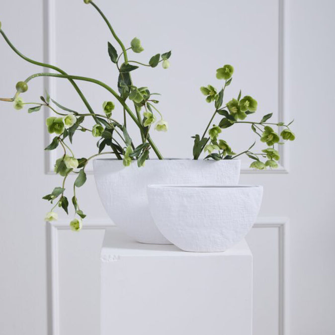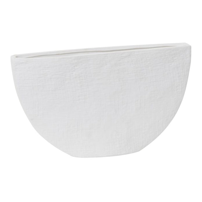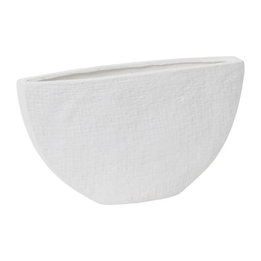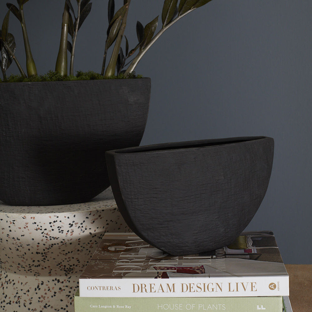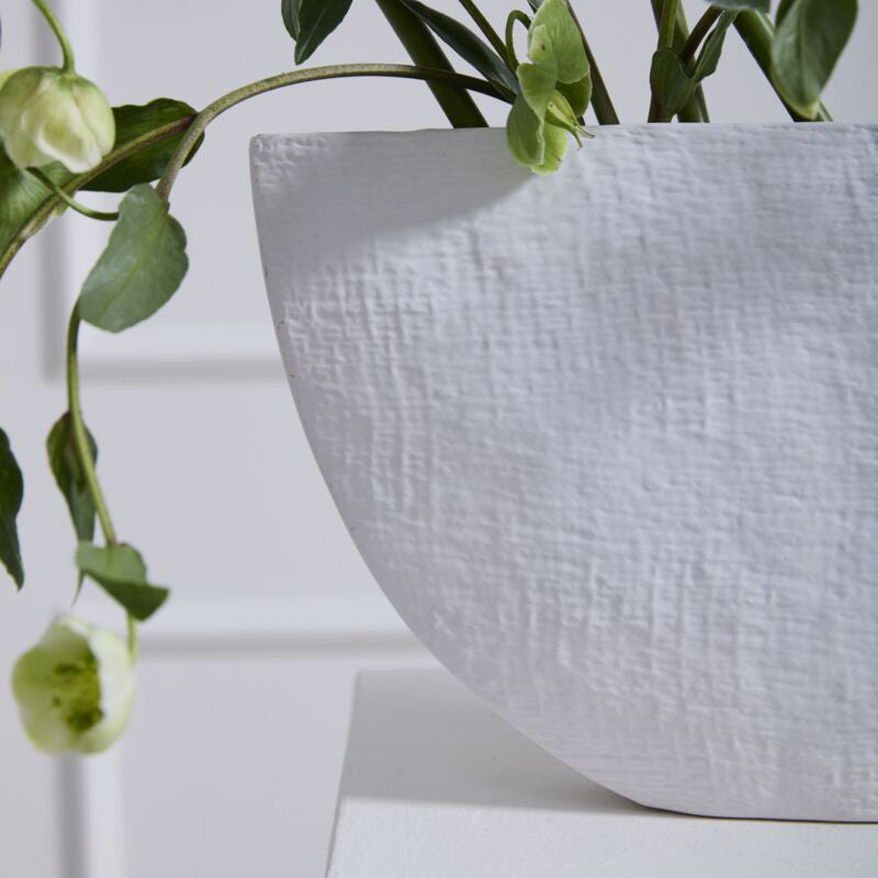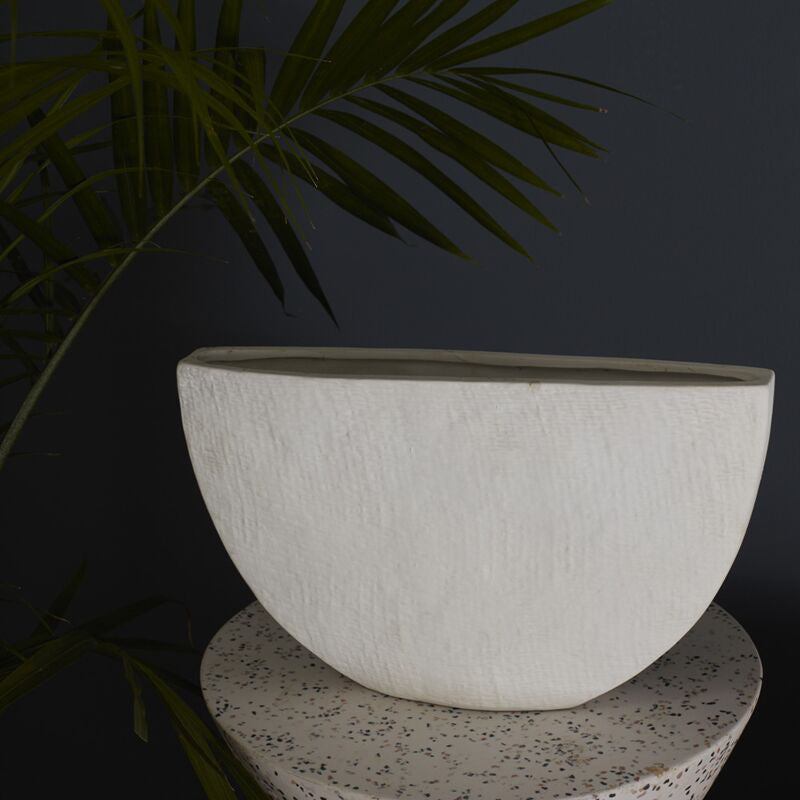 Elevate your plants with the striking simplicity of the Anneli Boat planter. Made from a mold & hand painted with a matte textured finish, this piece is perfect for succulent or floral arrangements (no drainage hole).