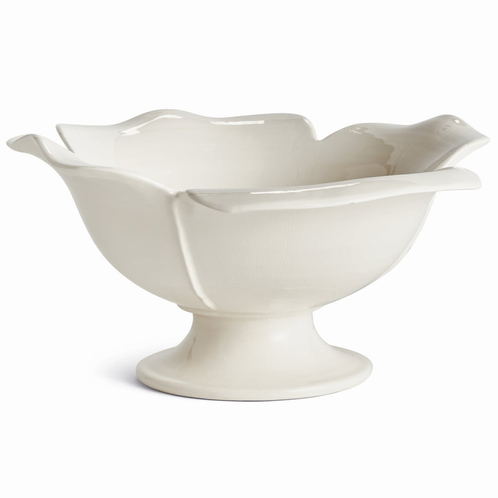 Each and every distinctive petal of the Petalo Decorative Footed Bowl is handmade, and hand-applied by Italian artisans in Tuscany, Italy. A subtle, open design in a soft white glaze. With a classic Italian craftsmanship passed down through generations, each piece is a true original. In grand scale, a dynamic centerpiece for feature table, kitchen island or mantel.