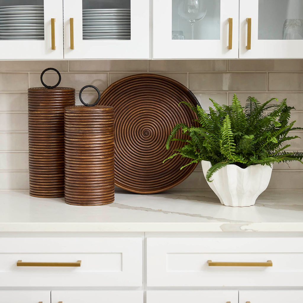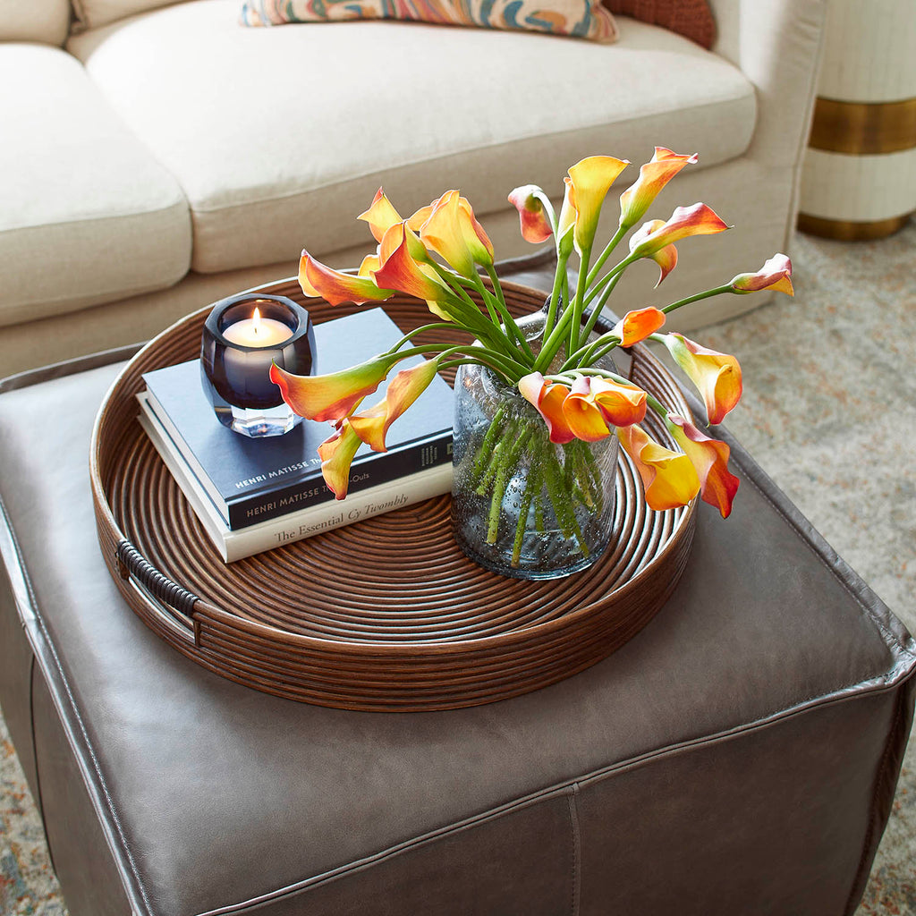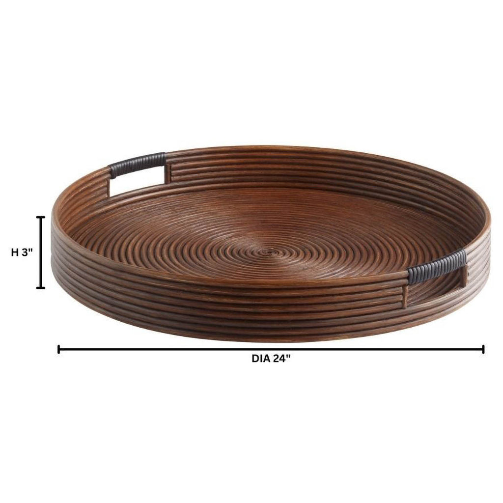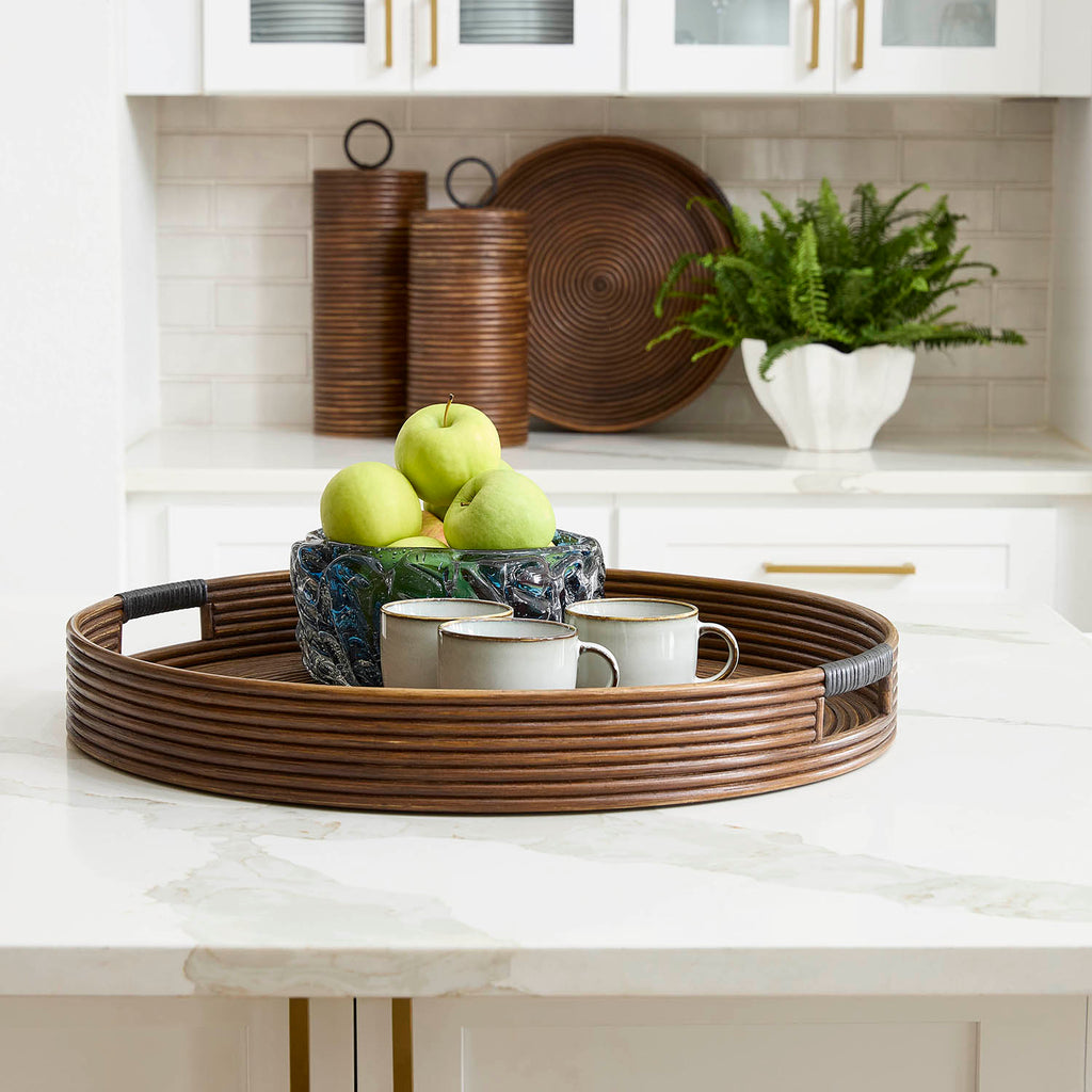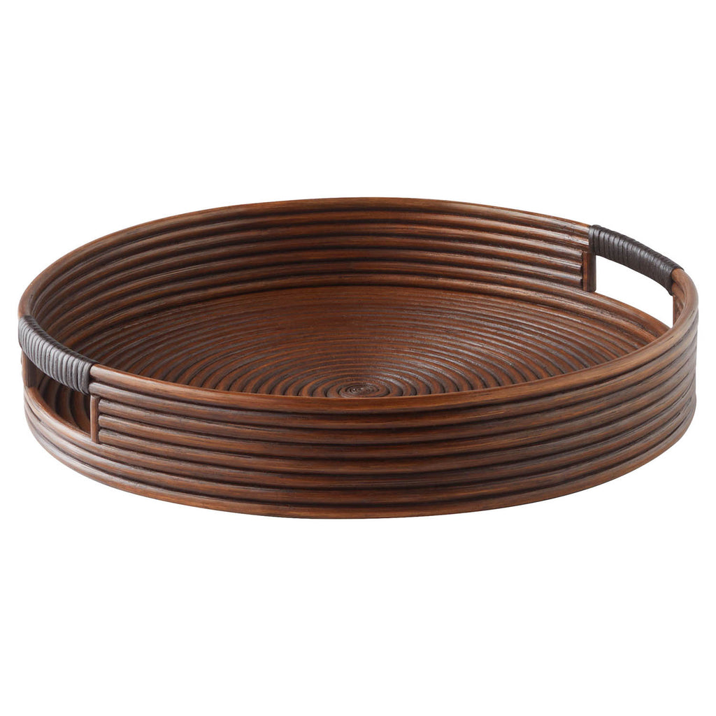 The Papeete Collection is a nod to the beauty of island life and the natural world. Named after the capitol of Tahiti, each piece within this collection features uniform walnut-stained rattan strands, tightly wound around an MDF substrate form and then coiled onto the top of the design. This intricate technique reflects the skill and dedication of Philippine artisans who handcraft these unique pieces. A walnut-stained recessed plinthe creates a cohesive design that resonates with the spirit of nature. This tray is an artistic representation of the beauty of tropical life.
