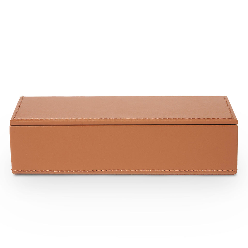 Villa & House’s signature use of rich materials and fine craftsmanship is on full display in the preppy and posh Hunter Collection. Crafted from lush tan leather with a micro suede interior, the Hunter Pin/Clip Box transforms your home office or study space with distinguished and distinctly American sophistication. Organize the papers and files you have strewn about in style with the Hunter Pin/Clip Box. Who says luxury can’t extend to your desk?