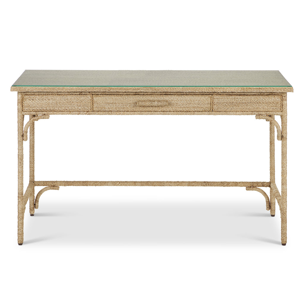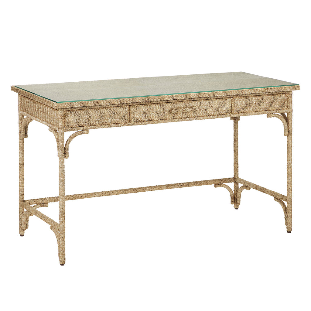 An earthy alternative to rattan and wicker, the Olisa Rope Desk is covered in braided abaca rope to bring a natural elegance to a room. The dexterity required to wrap a piece of furniture so skillfully makes this tan desk special. The artistic quality of this rope-wrapped desk makes it a stunning choice for a home office or a business-formal office in which style matters. This desk comes with a glass top that fits into the outer rim of the top and there is a beige finish inside its drawer. Aimee Kurzner designed the Olisa family of products.