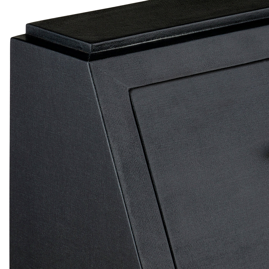 • Hardware: Lacquered Black Linen, Champagne Pull
