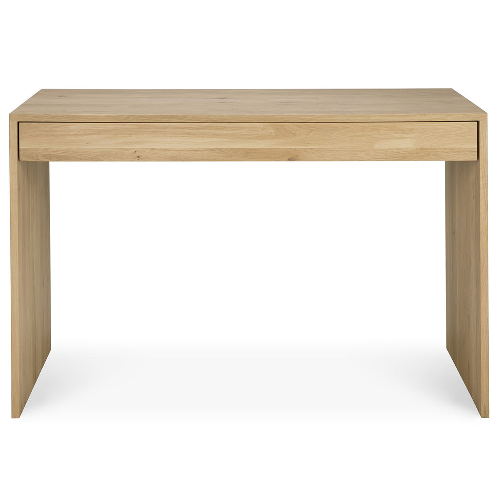 Add some warmth to your home office space with the Ethnicraft Wave desk. Made of solid wood, this desk features one push open drawer.
