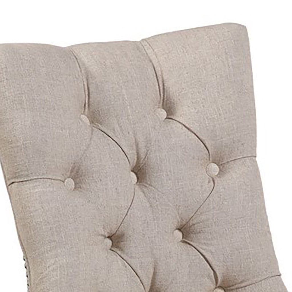The Fortnum Parsons Chair presents a button-tufted back and a gently sloped silhouette, crafted from Linen fabric for a classic touch. Its sturdy frame showcases rich hardwood legs complemented by chrome nailhead trim, adding a touch of elegance. With its traditional styling, this chair exudes timeless appeal, perfect for blending seamlessly into any decor scheme.