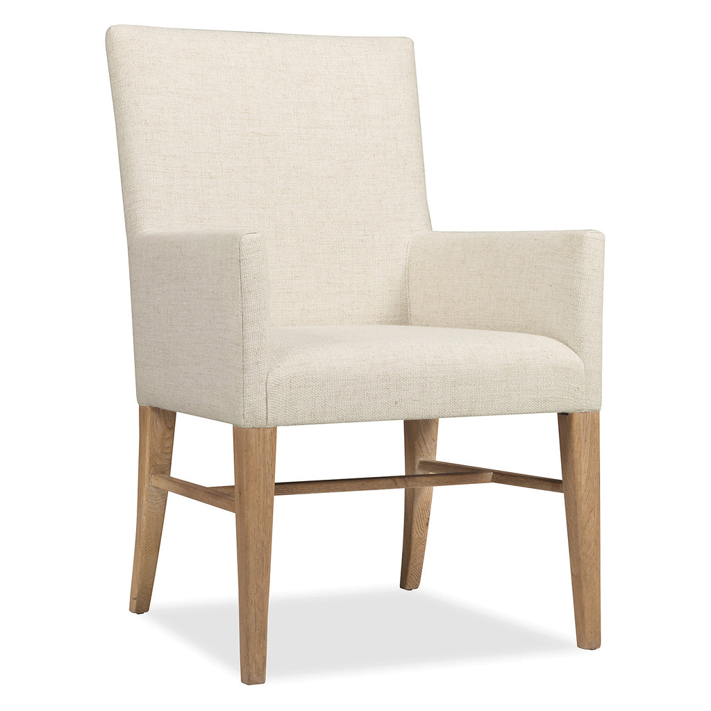 Blending relaxed rustic style with refined comfort, the Driftwood Upholstered Arm Chair in Buckboard finish features a soft bisque fabric seat and back, accented by upholstered arms and a sturdy oak frame. Ideal for design-conscious dining spaces, its casual elegance is perfect for everyday use or special gatherings. Striking a balance between heritage craftsmanship and contemporary versatility, where history and refinement are woven into every detail, the 45-piece Driftwood collection is rooted in authenticity. Revealing a depth of texture and a timeworn patina that evokes the beauty of naturally agedmaterials, the collection unfolds in three finishes. Buckboard evokes the quietwarmth of sun-faded oak. Worn Saddle is deep and burnished, a nod to the supple leather of well-loved armchairs and hand-tooled heirlooms. And Burnt Timber, dark and moody, carries the quiet drama of wood softened by time and touch. With an emphasis on craftsmanship and enduring style, the Driftwood collection offers a sophisticated yet livable approach to design, reminding us that true beauty—like great design—only grows richer with time.