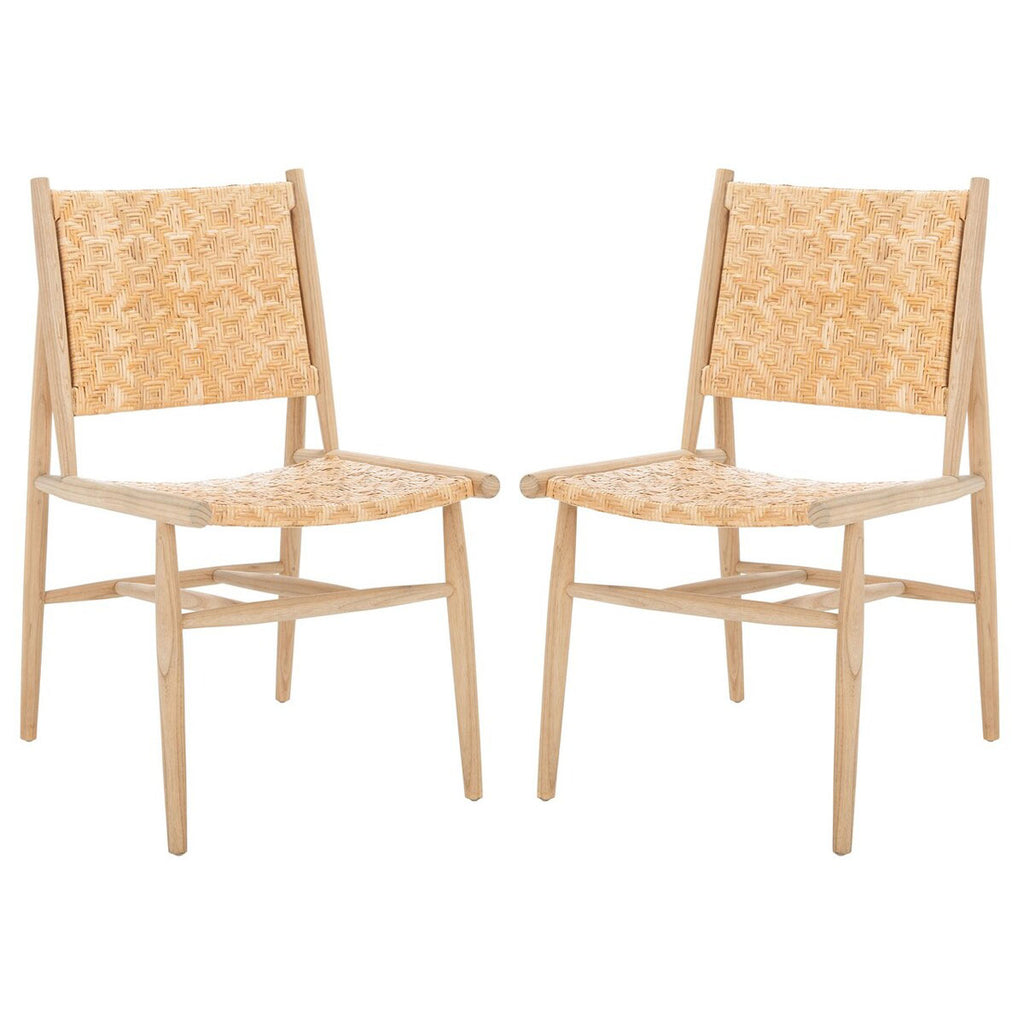 Bring the breezy feel of an outdoor resort bistro to your décor with this dining chair. A textured rattan seat and back give the Scandinavian-inspired natural wood frame a tropical touch, making it a favorite of eclectic designers. Sold as set of two.