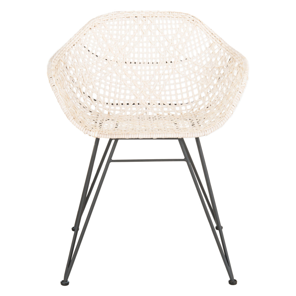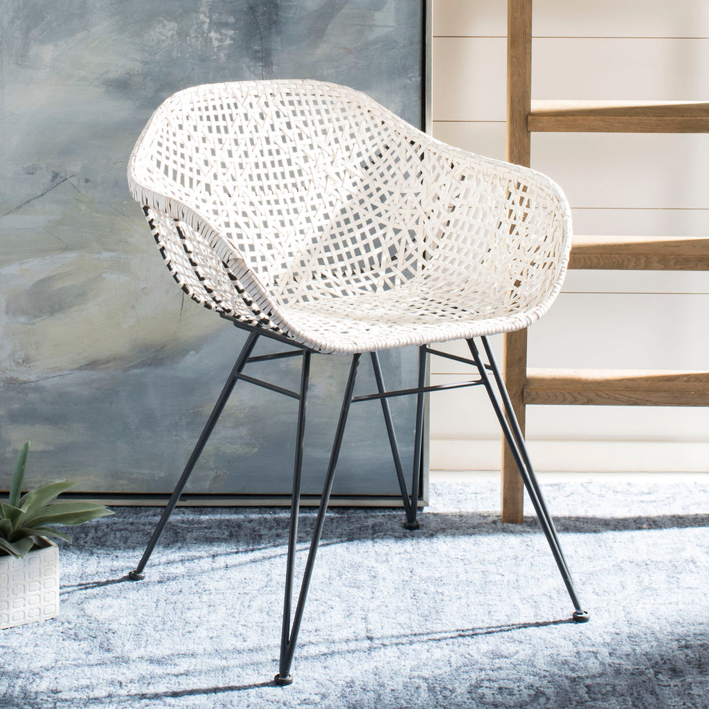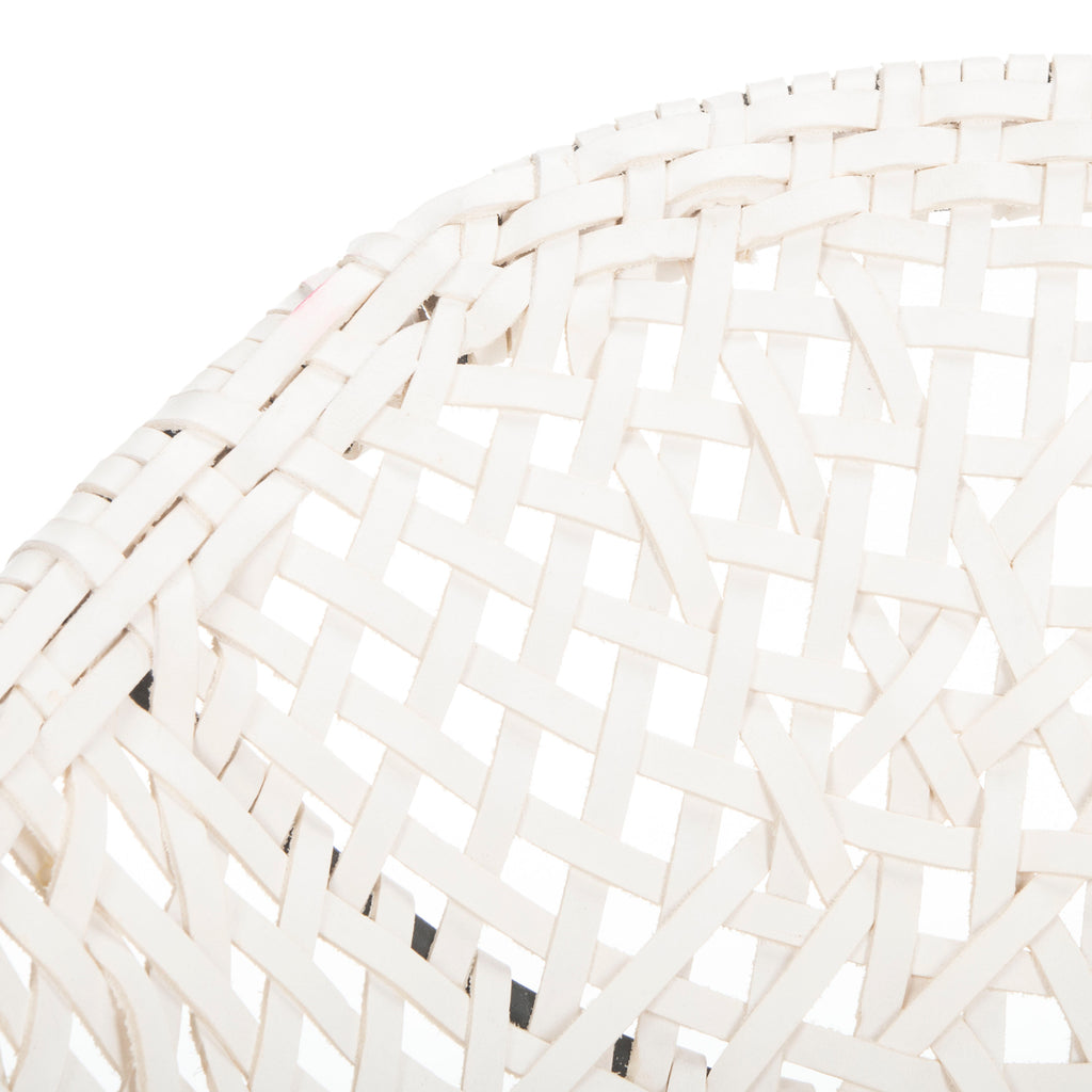 Infuse sophisticated style into any dining space with this contemporary leather woven dining chair. A modern classic, its gentle curves are upholstered with deluxe white leather. Designers love its sleek grey metal legs.