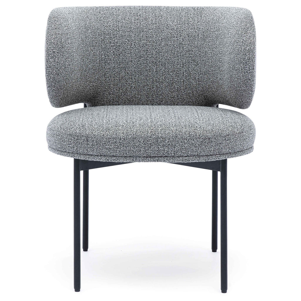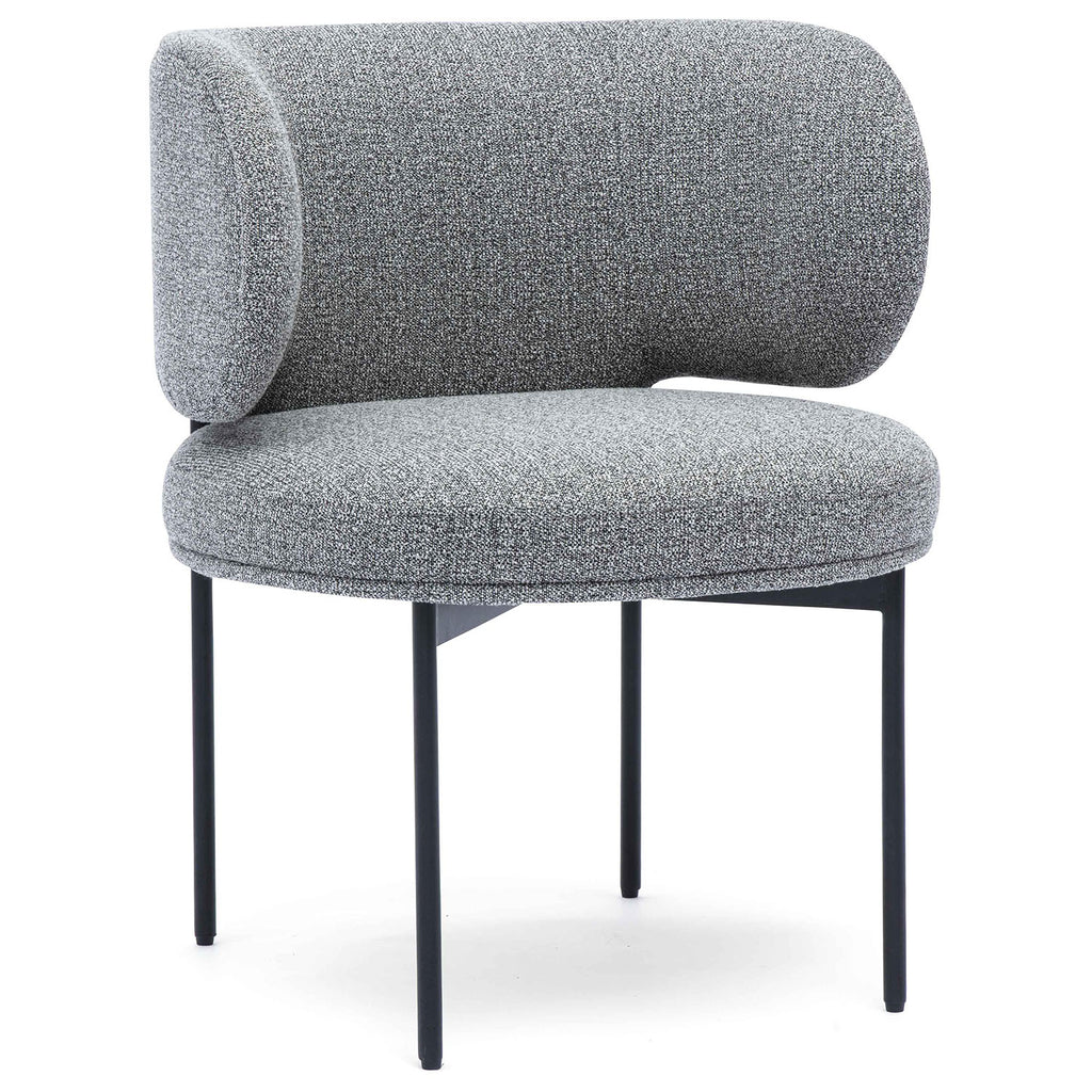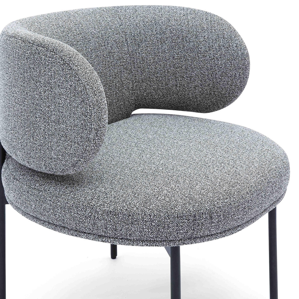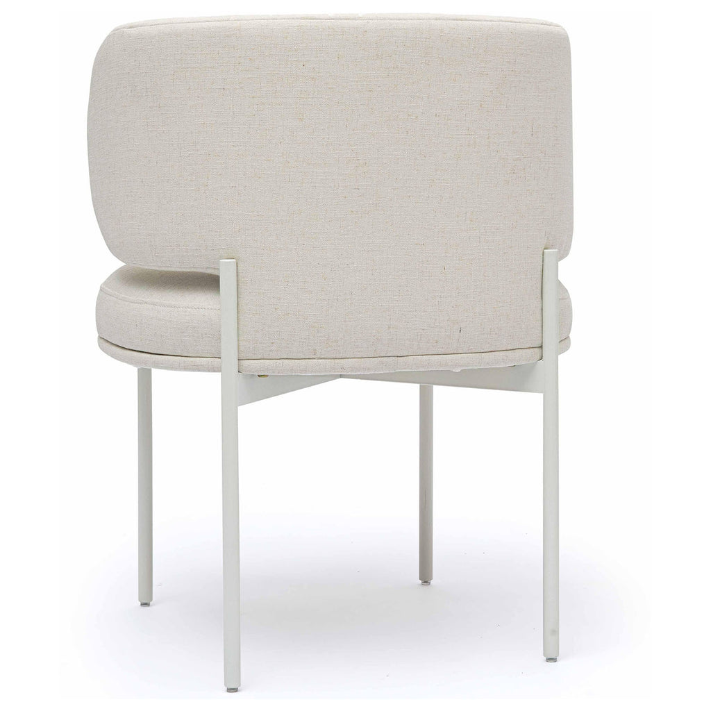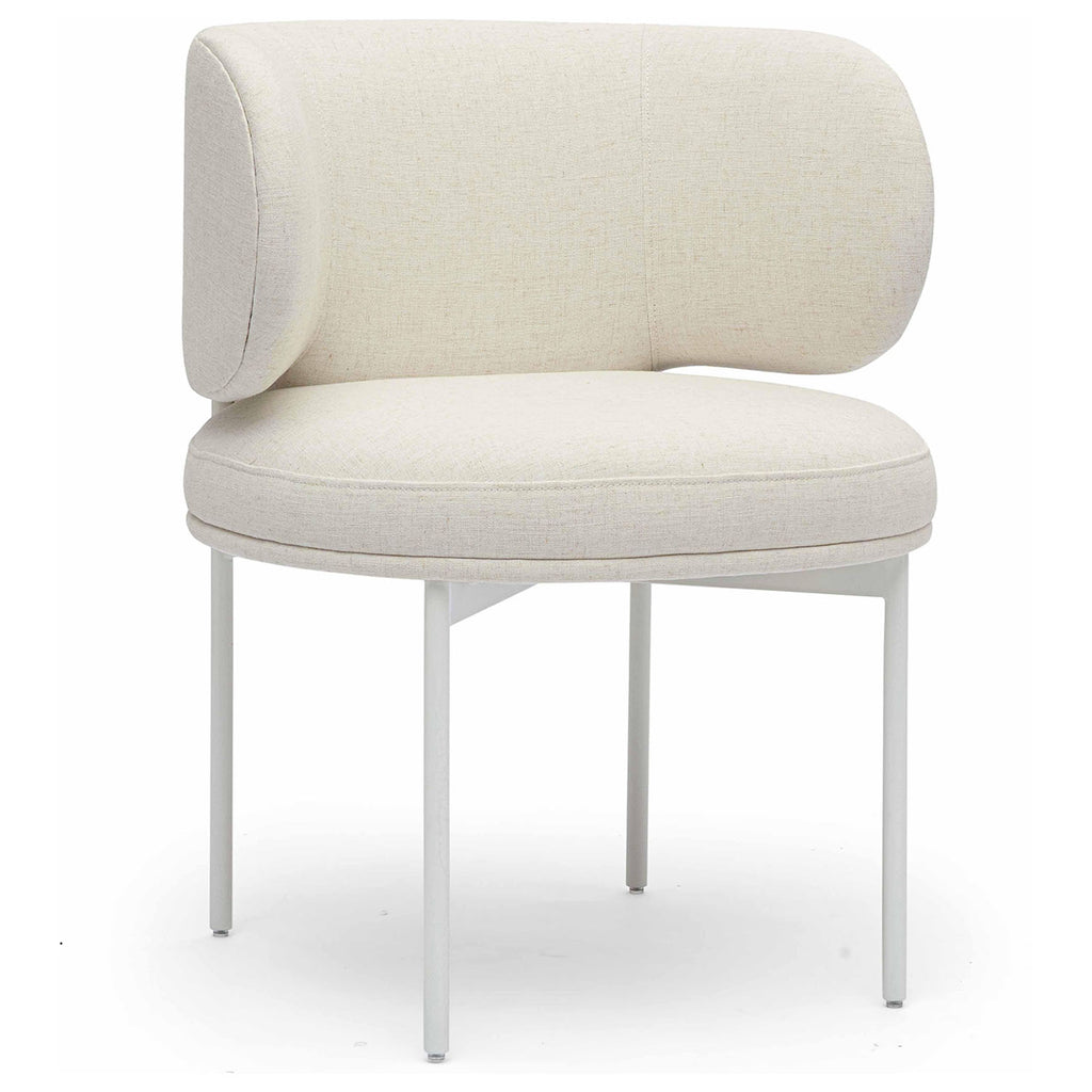 With retro curves and a sculptural metal frame, the Maureen Dining Chair makes a strong statement at the table. Wrapped in high-performance boucle or upcycled linen, its foam-padded back brings both comfort and polish.