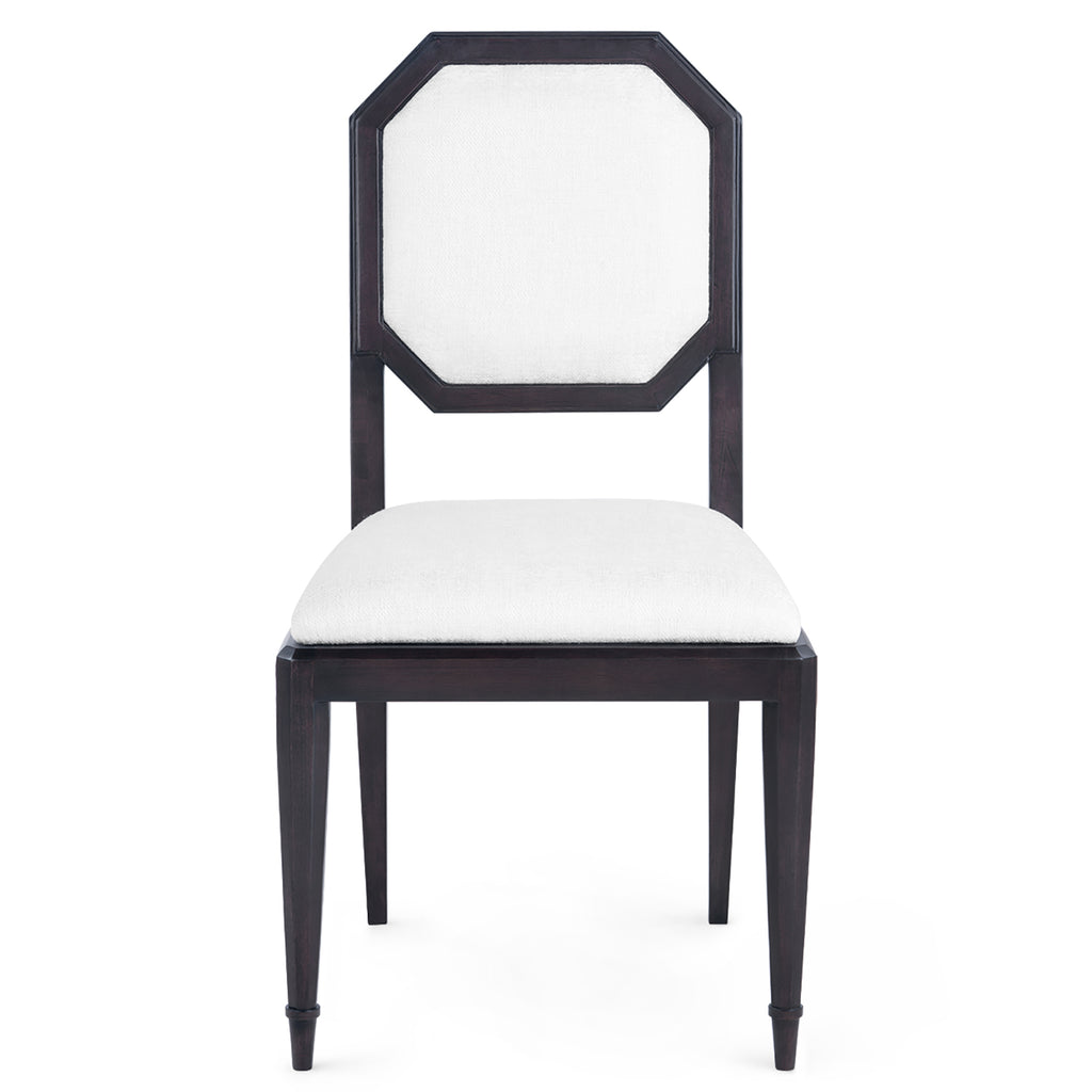 The Villa and House Philippe Side Chair is a remarkable fusion of comfort and artistry. Designed with a solid, sturdy frame, it offers both durability and elegance. Intricately carved, multi-layered channels bring a sense of craftsmanship and detail, while the gently tapered legs, ending in a carved sabot, provide a touch of refinement. The octagonal seat back adds geometric interest, while the plush upholstery in a flatwoven fabric, reminiscent of shaved chenille, enhances the chair's inviting appeal. Generous in size and beautifully designed, the Philippe Chair makes a striking addition to any room.