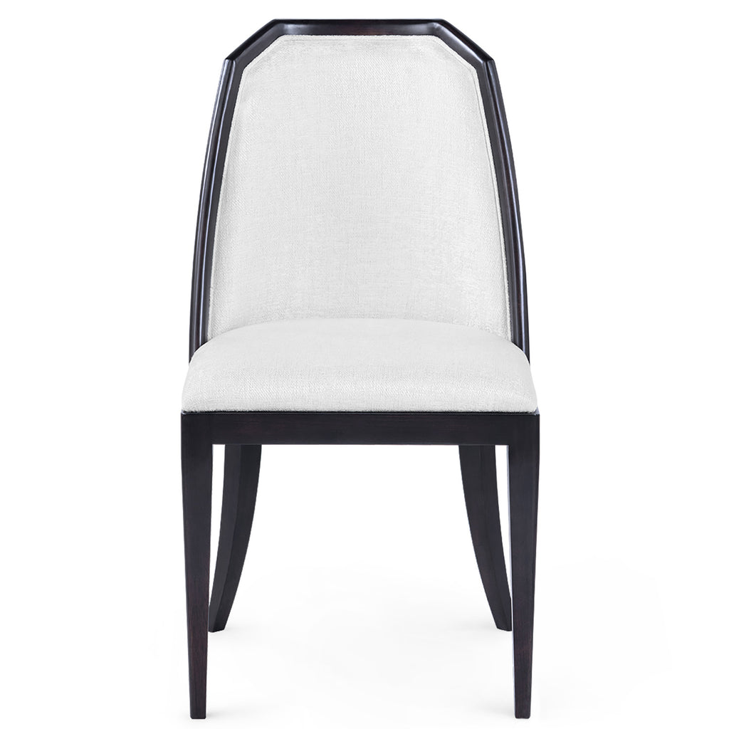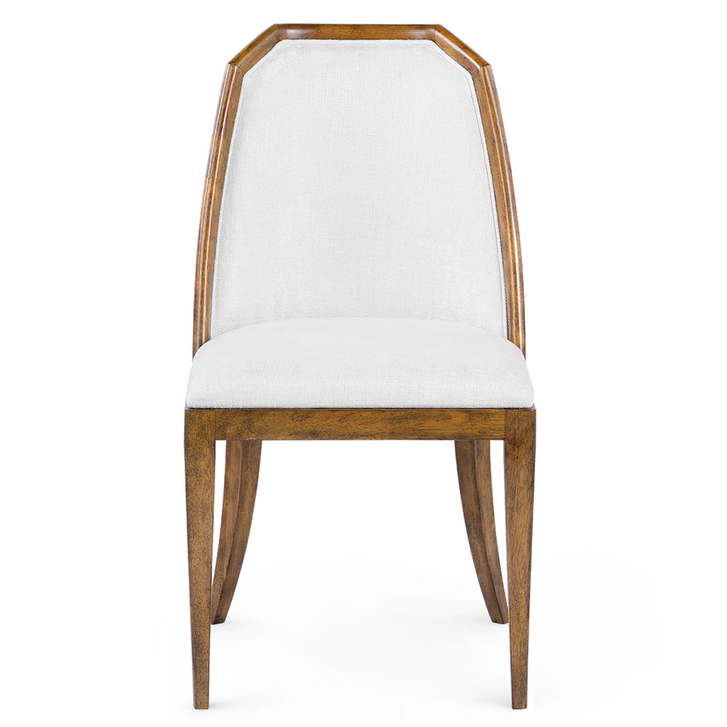 The Villa and House Sonata Chair is a beautifully crafted piece that combines traditional design with lasting durability. Made from rubberwood, it features a sturdy build and graceful details. The rear legs curve gently, while the front legs stand straight with subtly curved backs, creating a harmonious silhouette. With its large-scale, upholstered seat and backrest, this chair offers exceptional comfort and a touch of luxury. The fabric, a refined flatwoven material reminiscent of shaved chenille, adds a soft, inviting texture. The slight angularity at the top of the backrest lends a modern edge to its classic profile.