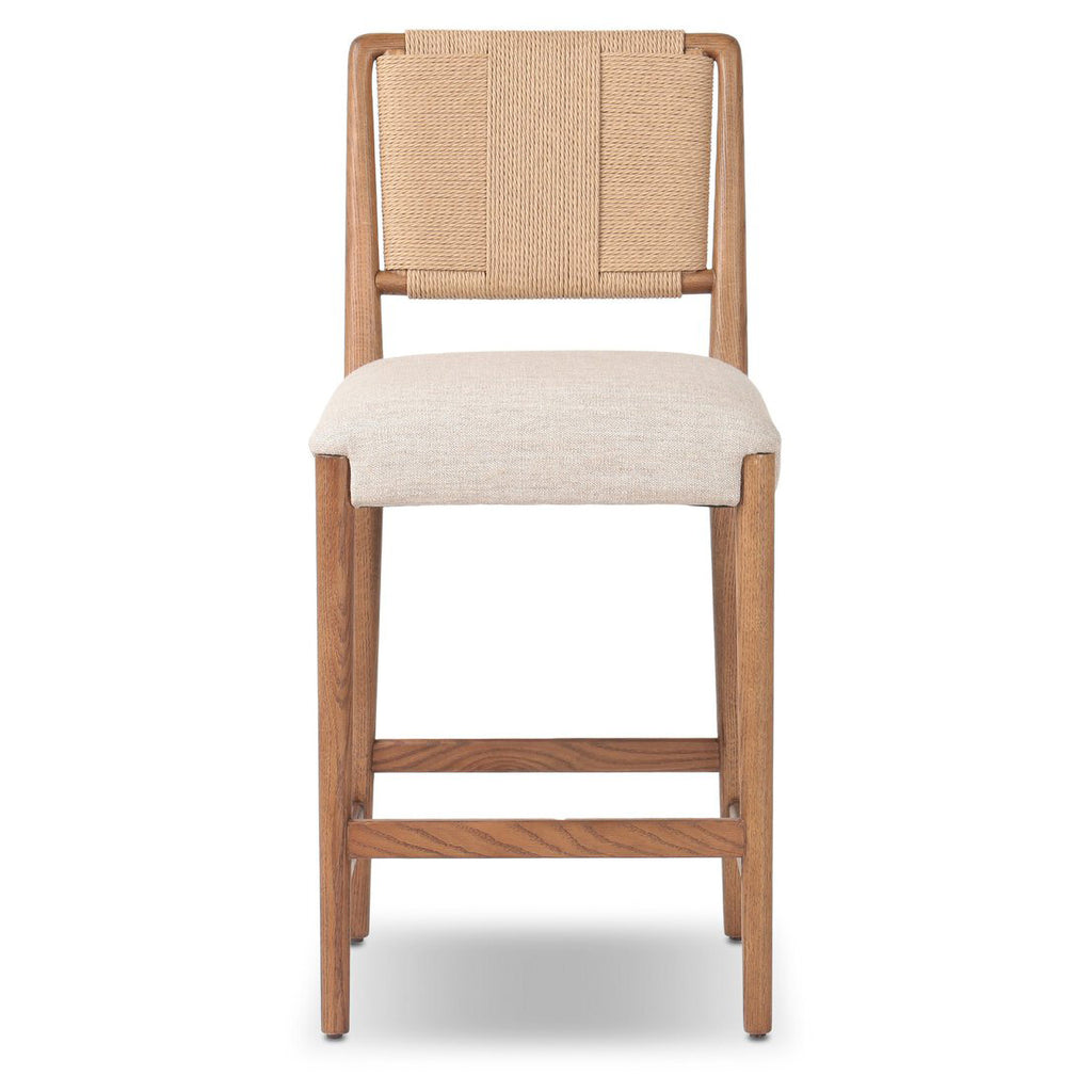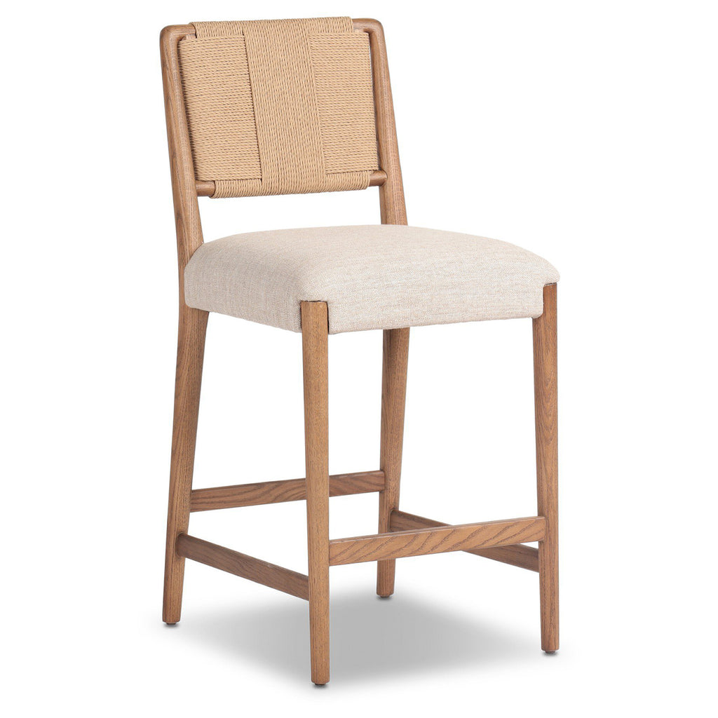 Mixed materials elevate the everyday counter stool. Alternating weave patterns on the seat's back add texture and visual interest, while a thick cushioned seat upholstered in high-performance fabric ensures a comfortable sit. Performance fabrics are specially created to withstand spills, stains, high traffic and wear, ensuring long-term comfort and unmatched durability.