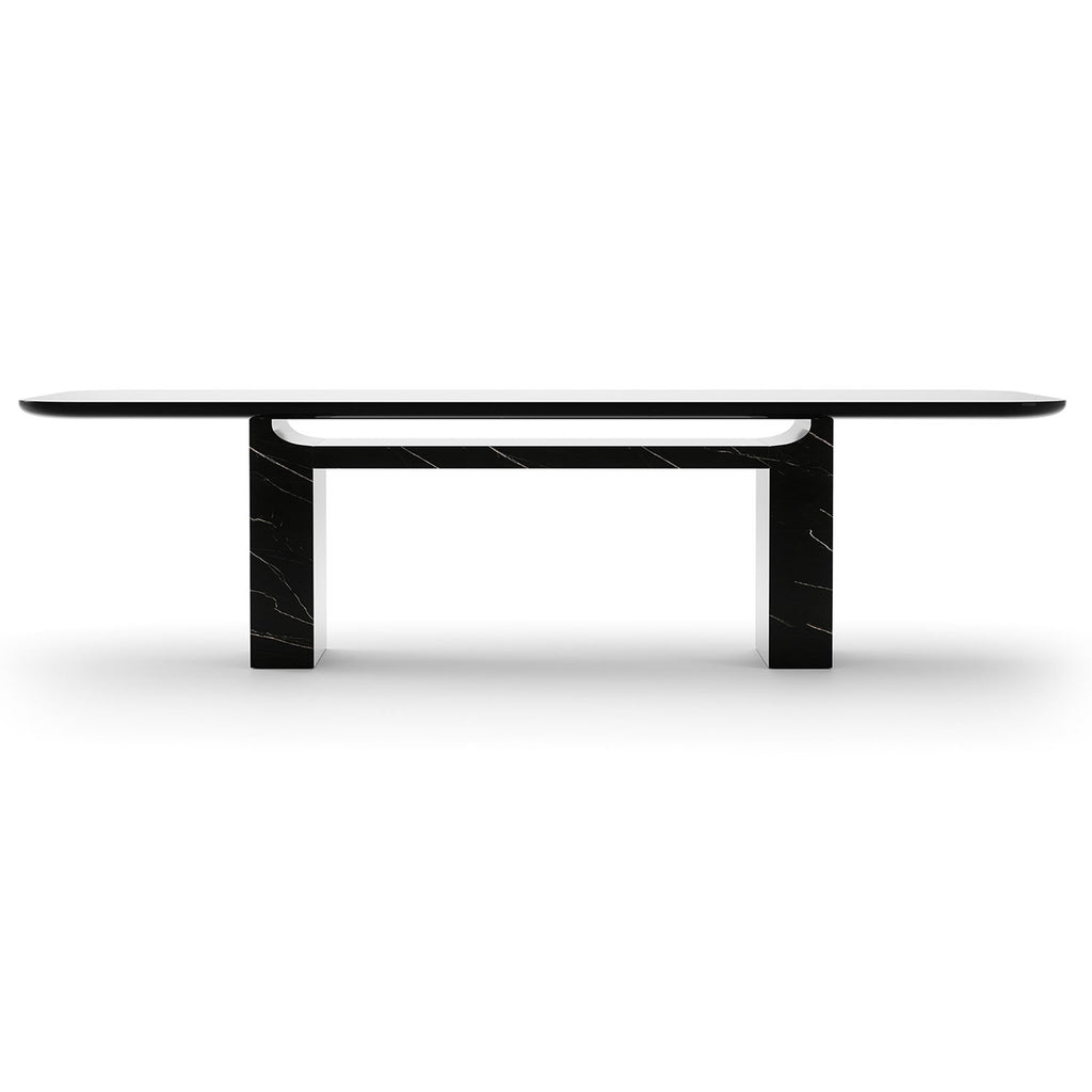 Gather around the refined elegance of the Overlap Rectangle Dining Table Dark. Its stunning Piano Black top, Whisper of Gold accents, and luxurious Nero Marquina pedestals set the stage for memorable dining experiences filled with warmth, sophistication, and lasting conversations.