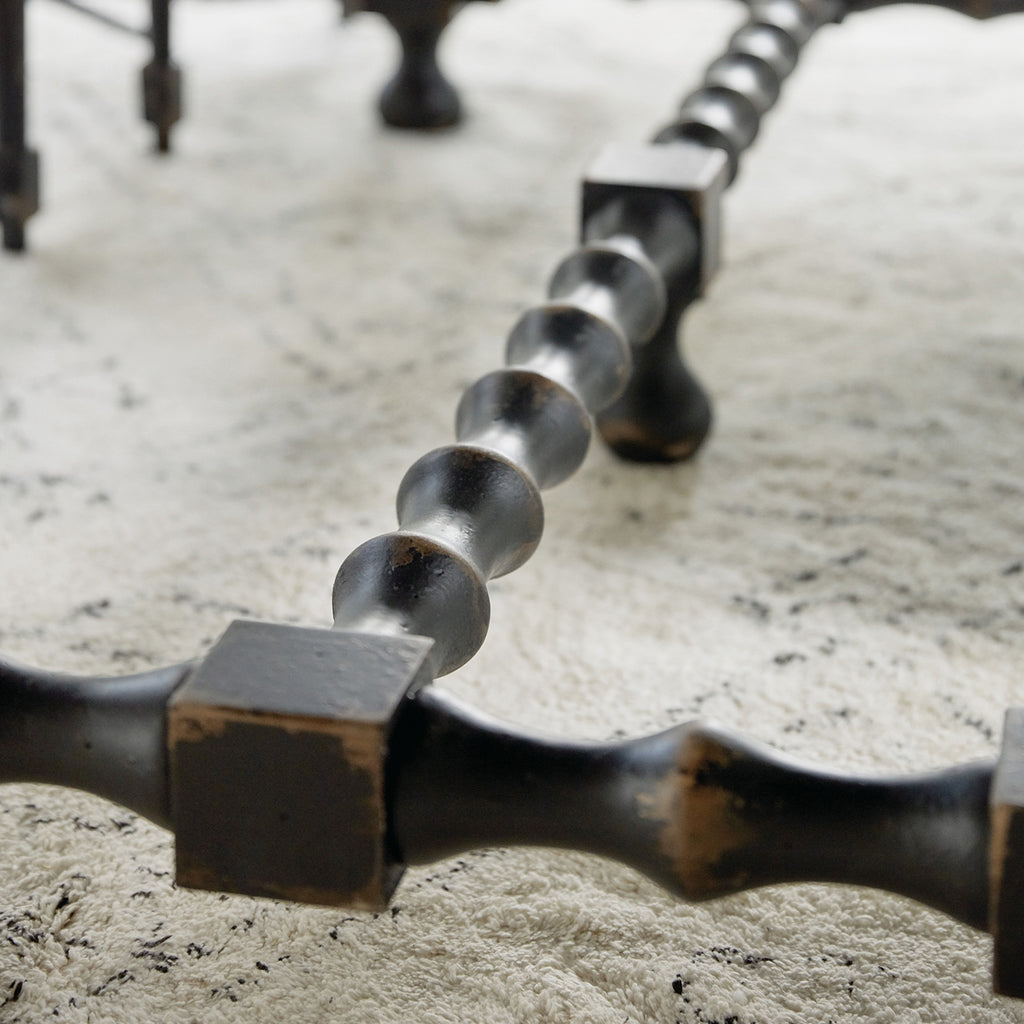 Be transported to a romantic, rustic Italian farmhouse as you dine around the Ciao Bella 84-inch Trestle Table. The base has turned legs and an exquisite black finish with hand-chiseling and wire brushing, and contrasts with a Flaky White top. The two 18-inch leaves extend the table to 120 inches, accommodating up to 10 guests. Beautifully crafted of Poplar Hardwood Solids with Pine Veneers.