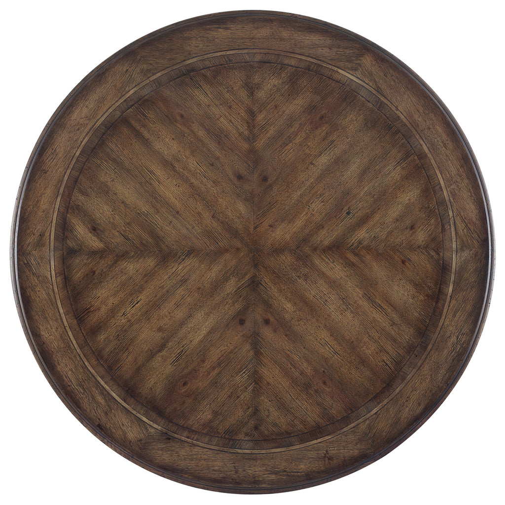 The breathtaking Rhapsody Round Dining Table brings together classic design elements, grand scale and a relaxed rustic finish to create an impassioned marriage of casual opulence for your dining setting. The classical urn-shaped base anchors the piece in old world charm, while the walnut-colored finish inspired by the rustic nature of reclaimed woods in beautiful patinas updates it for today's relaxed styles. Will seat up to eight guests.