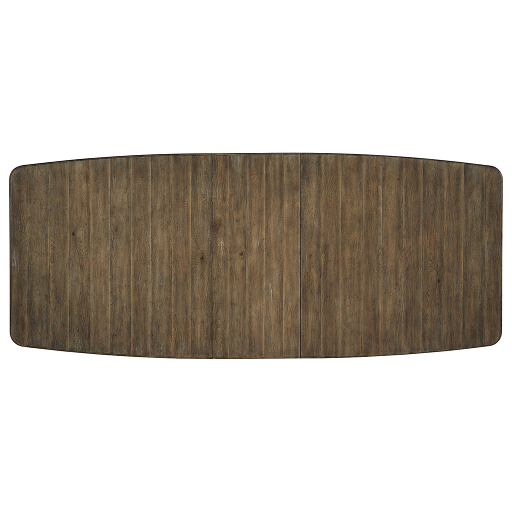 Inspired by the iconic Pacific Coast Highway, the Sundance Dining Table combines a Solid Wood-edge top crafted of Pecan Veneers with an airy double base. Finished in Cliffside, a rich brown with light burnishing on the edges, the table offers two 18-inch leaves, extending the table to 118 inches, accommodating 2 arm chairs and 6 side chairs with the leaf included.