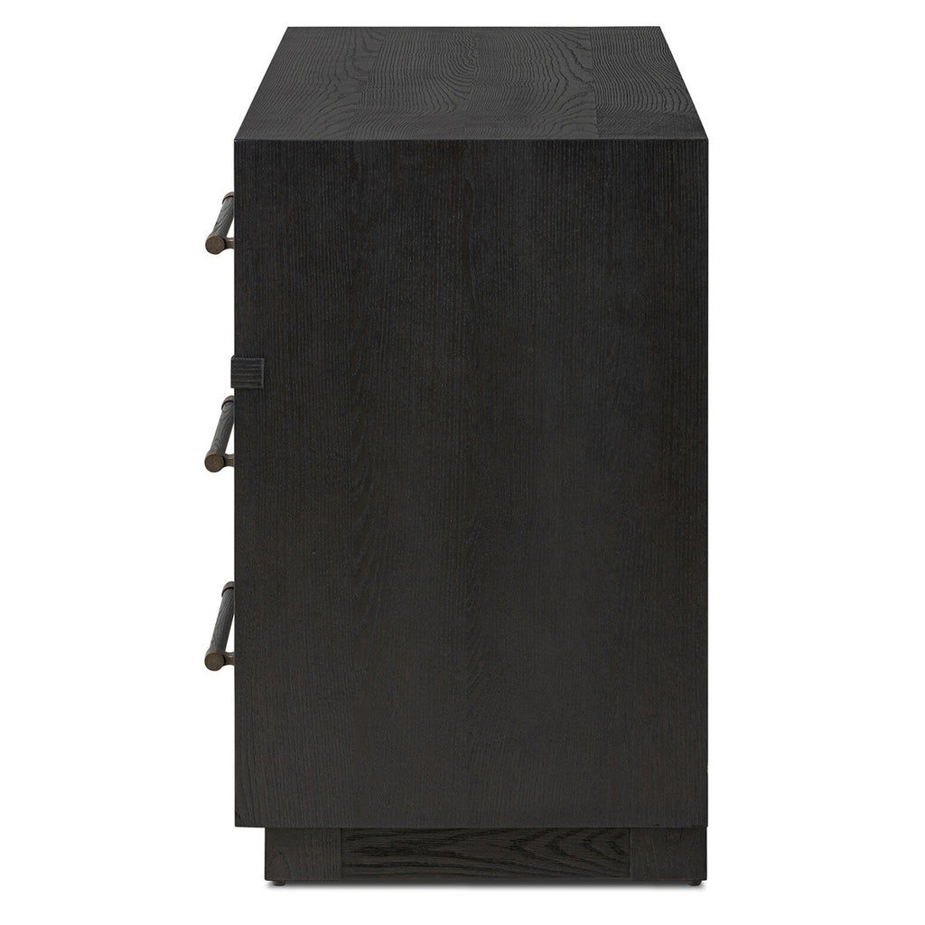 Beautifully minimalist. A six-drawer dresser made from black-finished ash features long, linear bronzed hardware for a smooth, clean look