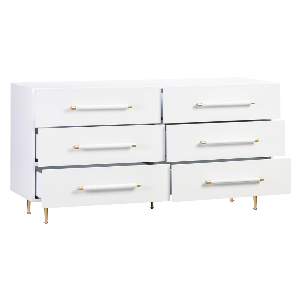 Simple yet brimming with understated elegance, the Trident dresser offers modern appeal and stylish functionality. Featuring plenty of storage space for your essentials, soft-close drawers and brass accents.