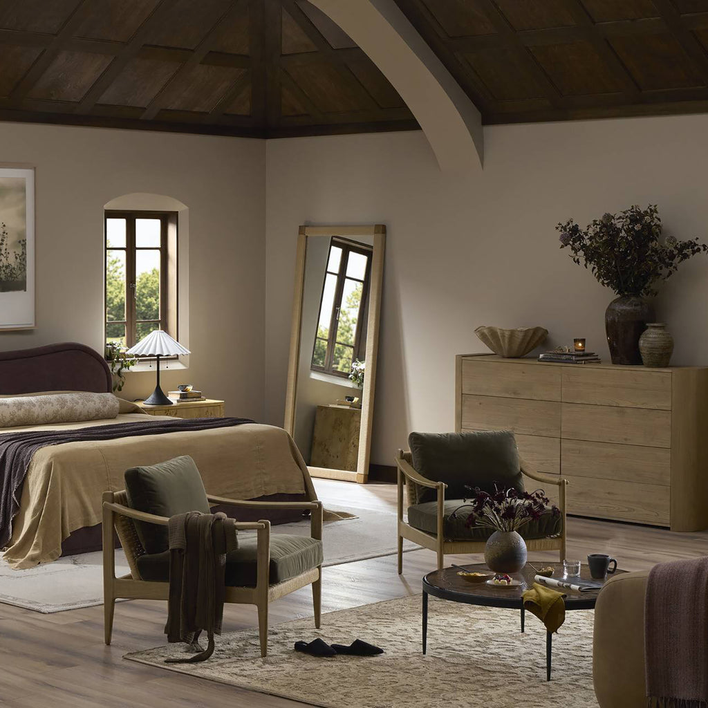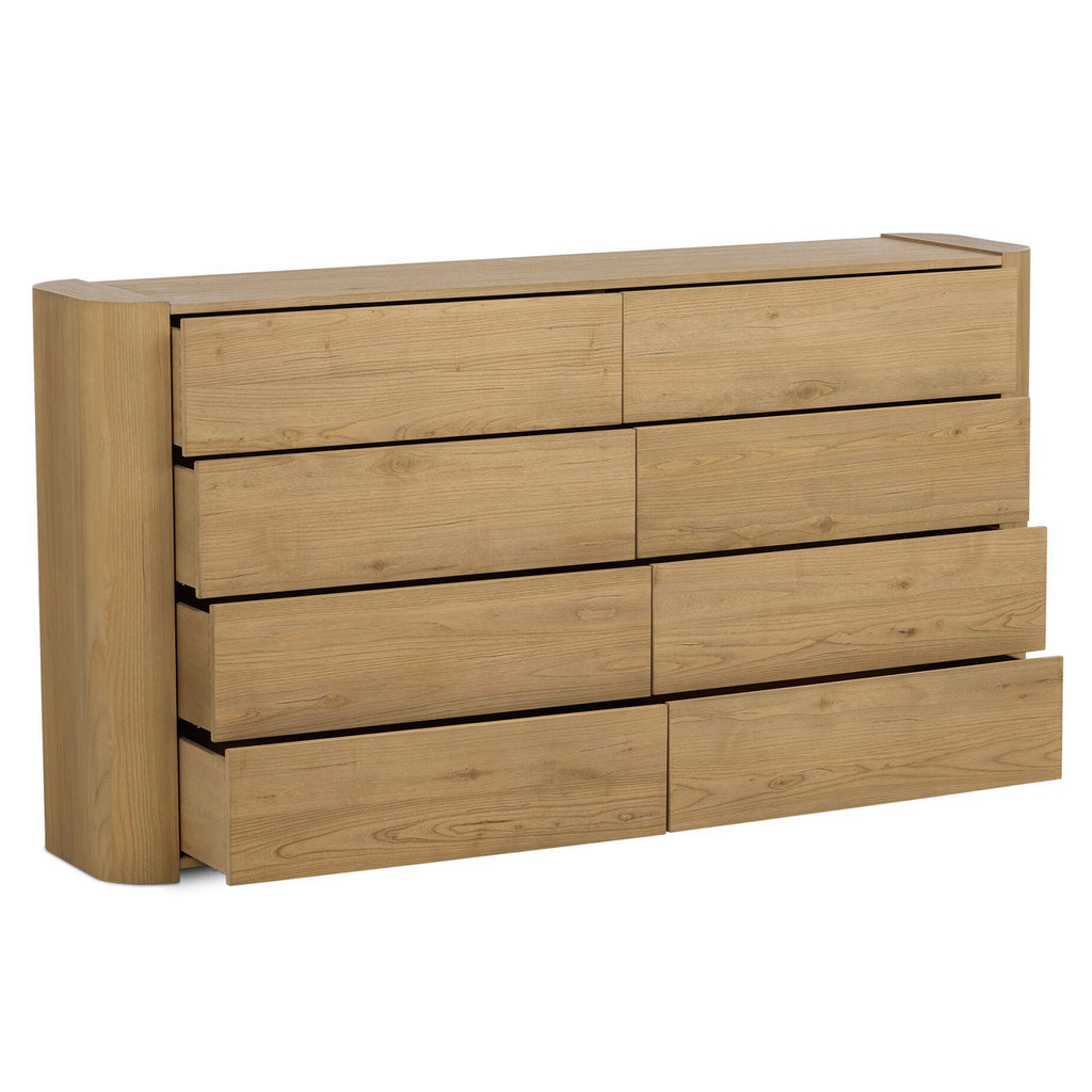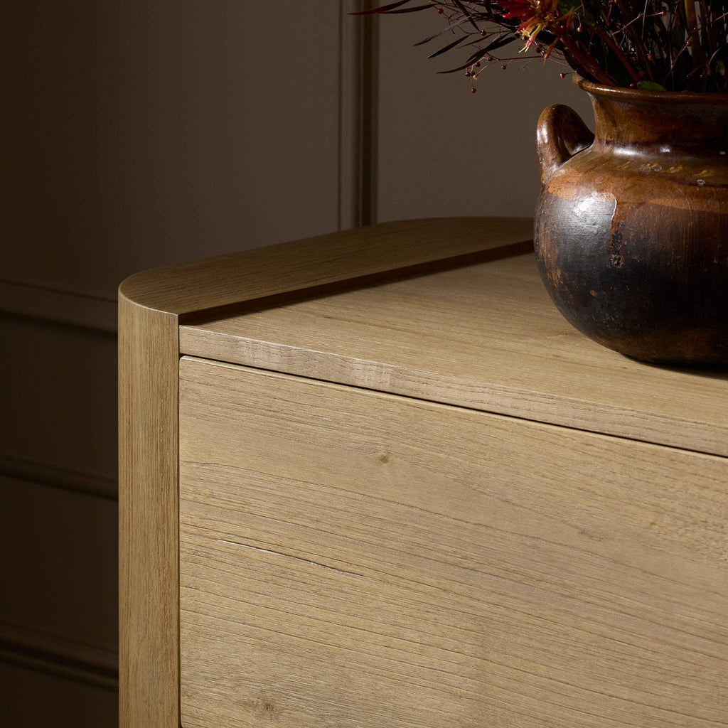 A smart choice in the minimalist bedroom, this sungkai dresser is sandblasted to highlight the wood's natural grain. Rounded corners soften the finished look, and six push-latch drawers maintain the understated style.