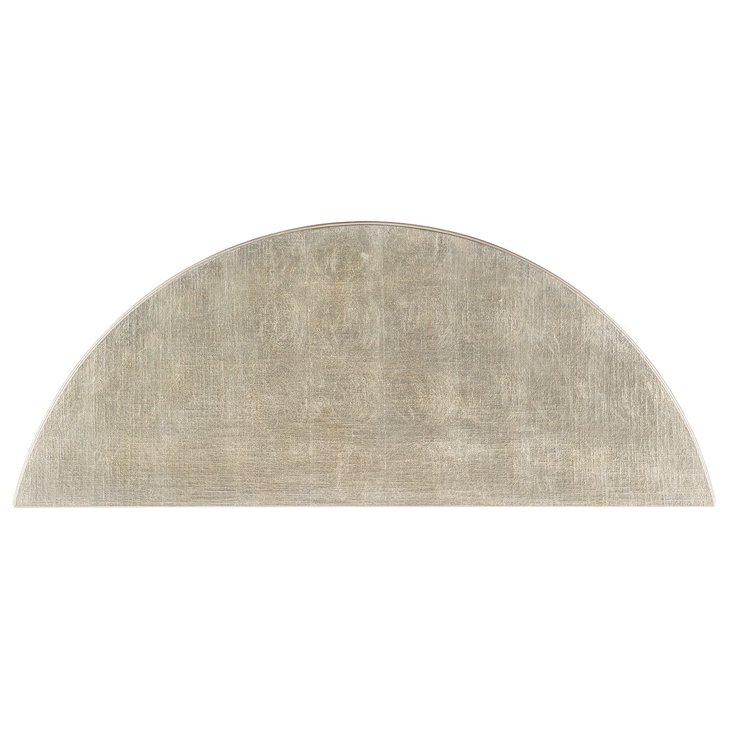 In a delicate French design with a tactile form, the Marguerite Demilune Chest is crafted of wood with champagne leaf linen with handpainting. There’s one fixed shelf behind the doors and a vertical divider that creates four open spaces on the inside. Silver-finished custom floral knobs add a stylish accent.