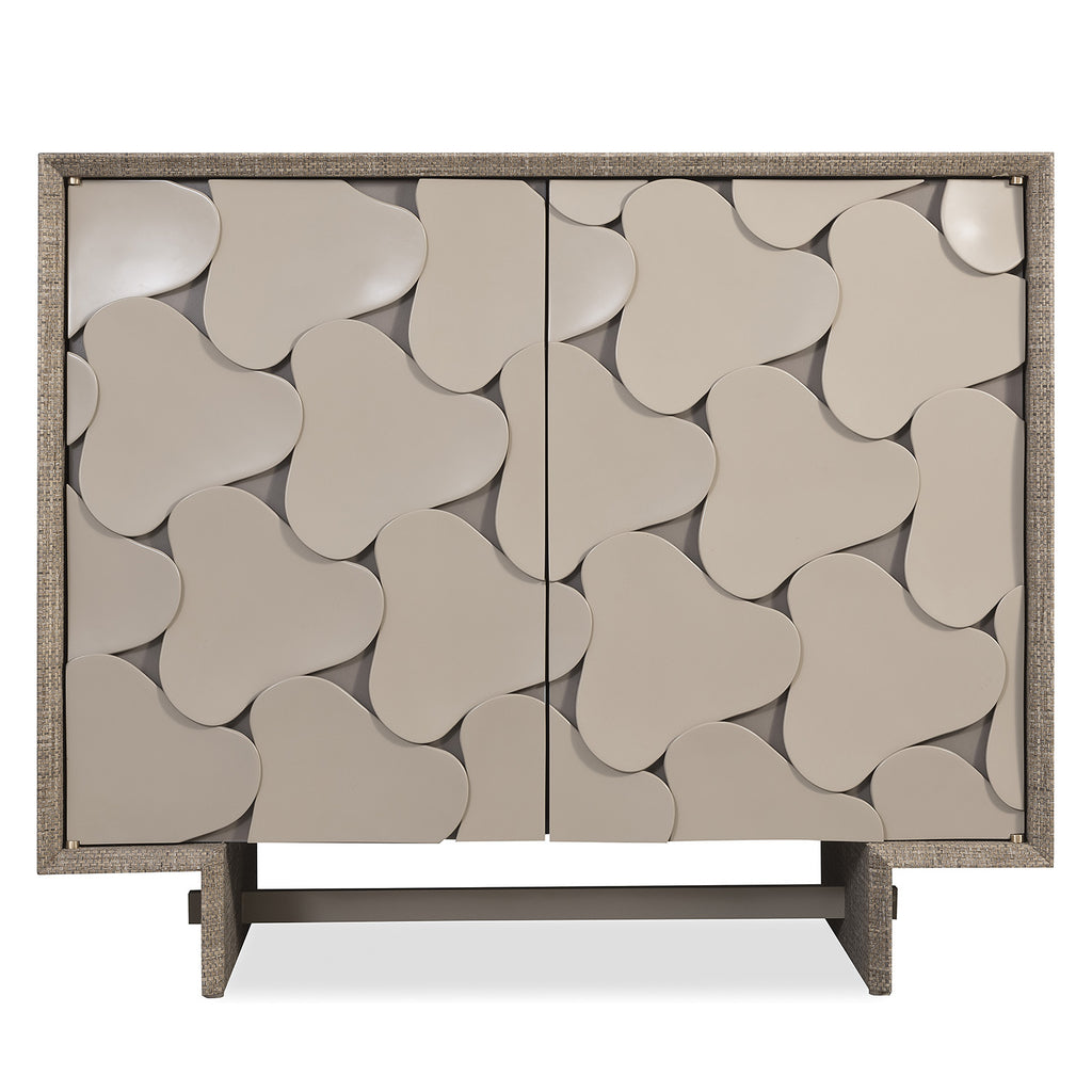 Artistic and eye-catching, the Pinwheel Hall Chest features a raffia-wrapped exterior and painted pinwheel motifs on the doors. Its internal shelves and clean-lined form make it ideal for soft modern or creative transitional spaces. Come closer to Melange, and you will discover something unexpected, something far more than an accent furniture collection offering a multitude of finishes. An eclectic blending of colors, textures and materials in a vibrant collection of one-of-a-kind artistic pieces, Melange is meant to inspire you and fuel an experience of self-discovery. Melange can provide that spark needed to begin the transformation of a room and a renaissance in your life. Each piece of Melange has its own story. The designs are versatile and timeless, easily transcending from one life stage to the next, from home to home and generation to generation.