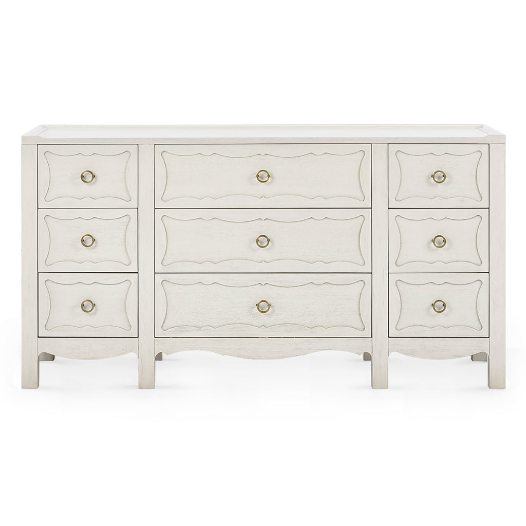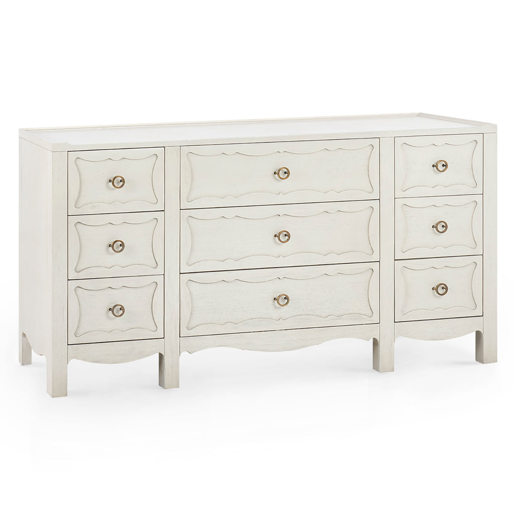 The Villa & House Sara Collection brings a touch of vintage charm with its provincial-inspired detailing and graceful silhouette. Crafted from lacquered acacia wood, each piece features drawer fronts adorned with delicate raised paneling that echoes classic European cabinetry. Softly curved or scalloped aprons along the base enhance the romantic feel, adding a sense of movement and refinement. With its blend of historical influence and clean, modern finishing, the Sara Collection feels timeless, feminine, and effortlessly livable.