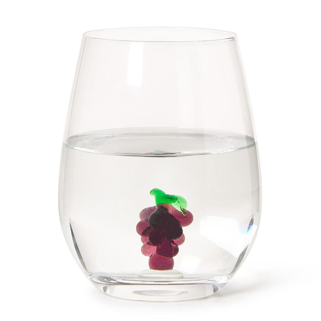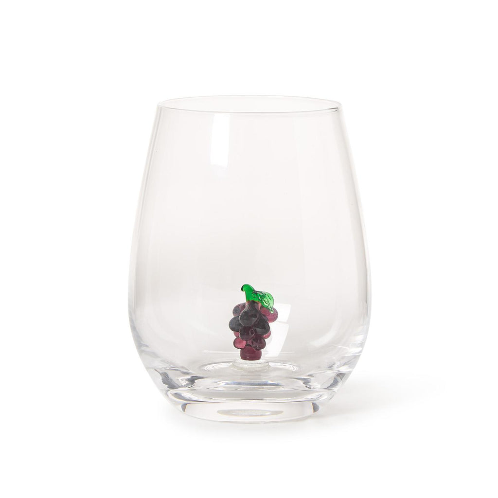 This hand blown stemless jumbo wine glass holds 20 ounces of your favorite drink. A bunch of grapes sits on the bottom of each glass will be unique and comes to life when the liquid magnifies its appearance.