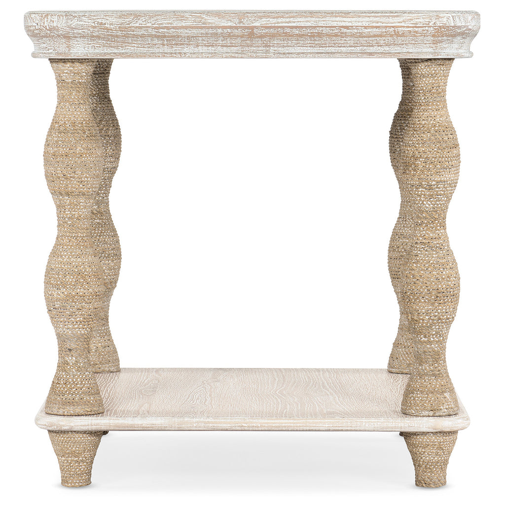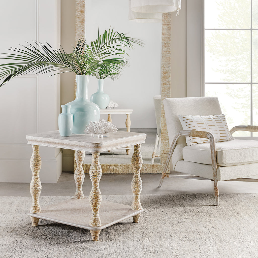 With a refreshing nautical appeal, the Bahari Lamp Table combines shaped legs wrapped in whitewashed rope with the light and airy wire-brushed Surf finish over Oak Veneers for a look inspired by casual waterfront living. One fixed shelf.