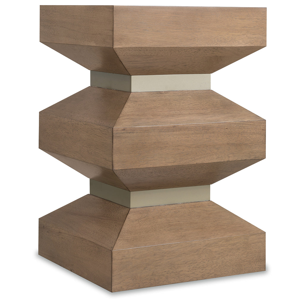 Symmetrical and chic, the Sonnet Square End Table design is a chunky geometric shape with two satin-finished metal waistbands. In a convenient, compact footprint that’s 16 inches square, it is crafted of Quartered and Cathedral-Cut White Oak Veneers in a light earthen-toned finish.