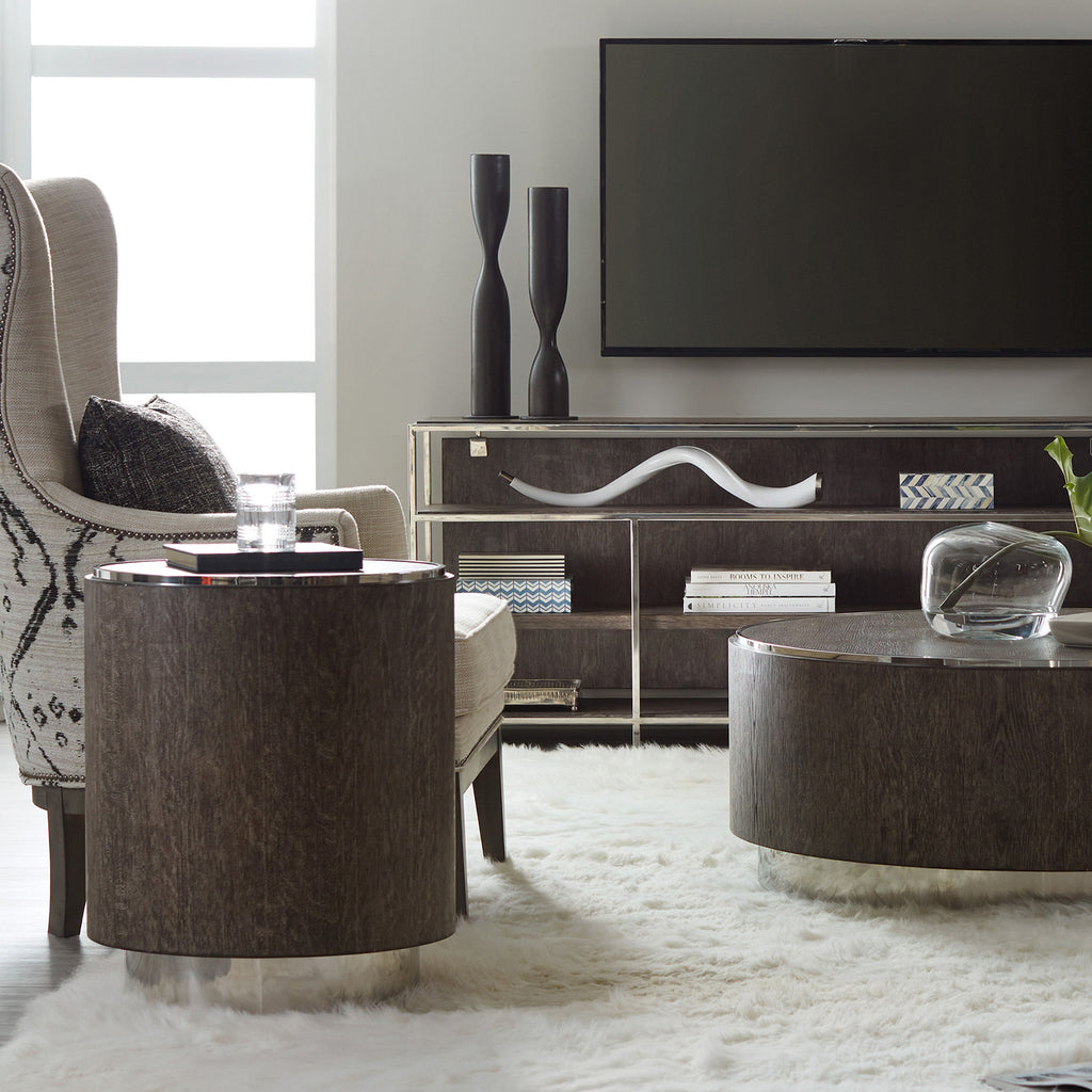 Warm up your modern style with the Storia Round End Table combining wire-brushed, greige-colored Oak Veneers with stainless steel accents in a compact shape that makes it versatile for a variety of spaces.