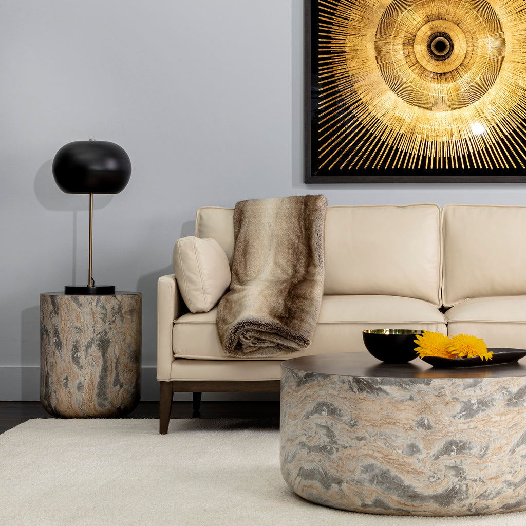 • Finish: Gray/Wood Grain Brown or Marble Look/Antique Brass