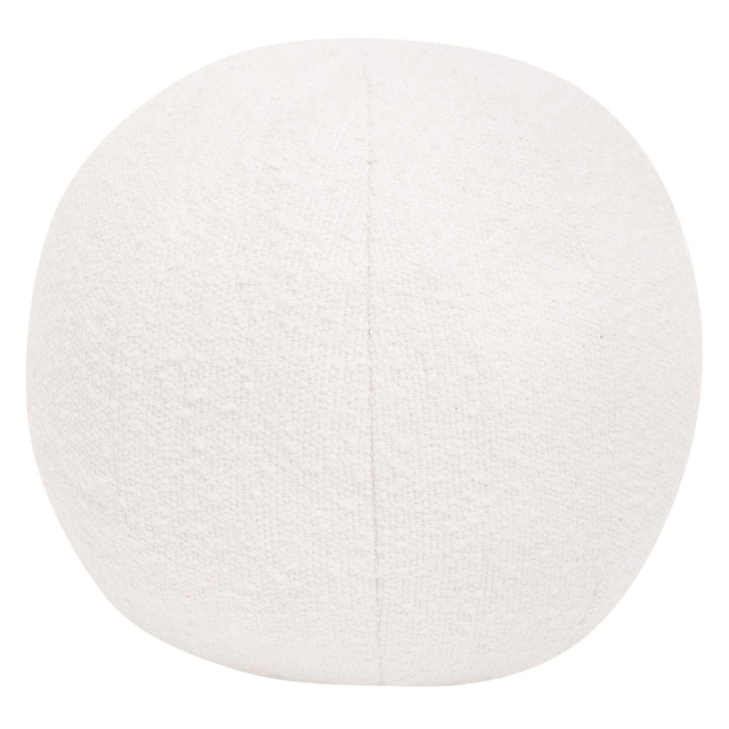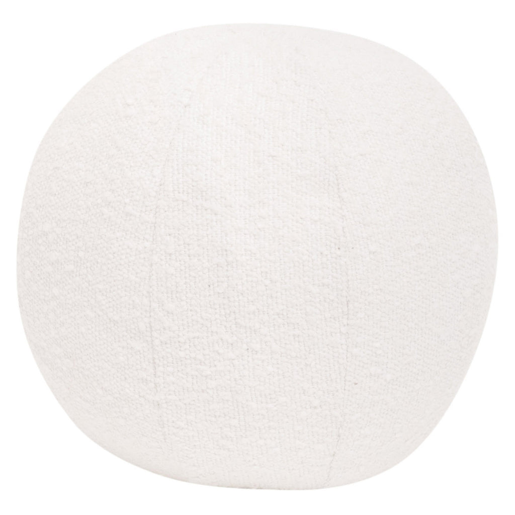 The 12" Essential Sphere Pillow by Essentials For Living offers a playful yet sophisticated accent to any decor. Designed in a ball-like sphere shape, this pillow measures 12" around, making it a perfect standalone piece or layering accessory. The LiveSmart Boucle Snow fabric, a soft and durable blend of polyester and acrylic, resists stains while providing a cozy, textured look. Filled with 100% down, it delivers plush comfort and a touch of luxury. Completed with lines of fine stitching down the sides of the pillow, this fun accessory brings a unique style that suits modern and traditional spaces alike.