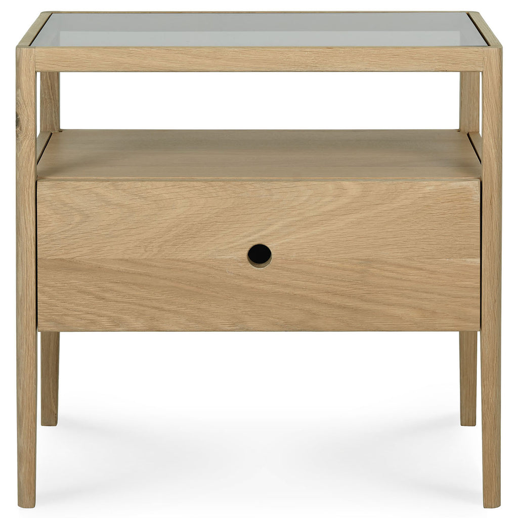 With its one drawer, open space and slightly tapered legs, the Ethnicraft Spindle bedside table is the perfect no-nonsense companion for the striking Ethnicraft Spindle bed.