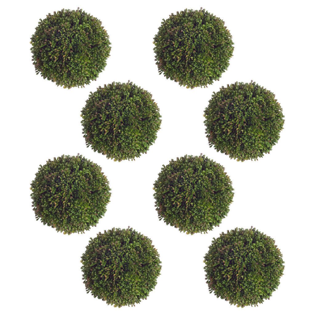 Add a pop of natural color to your living space with this beautiful set of Sedum Half Orbs. Featuring six pieces, this set is sure to fit in with any style of home decor. The varigated sedum foliage paired with the quality plastic composition is the perfect combination to create a stunning display. Use the peices together in a centerpiece to make a statement, or display them around your home with other decor to add a touch of nature.