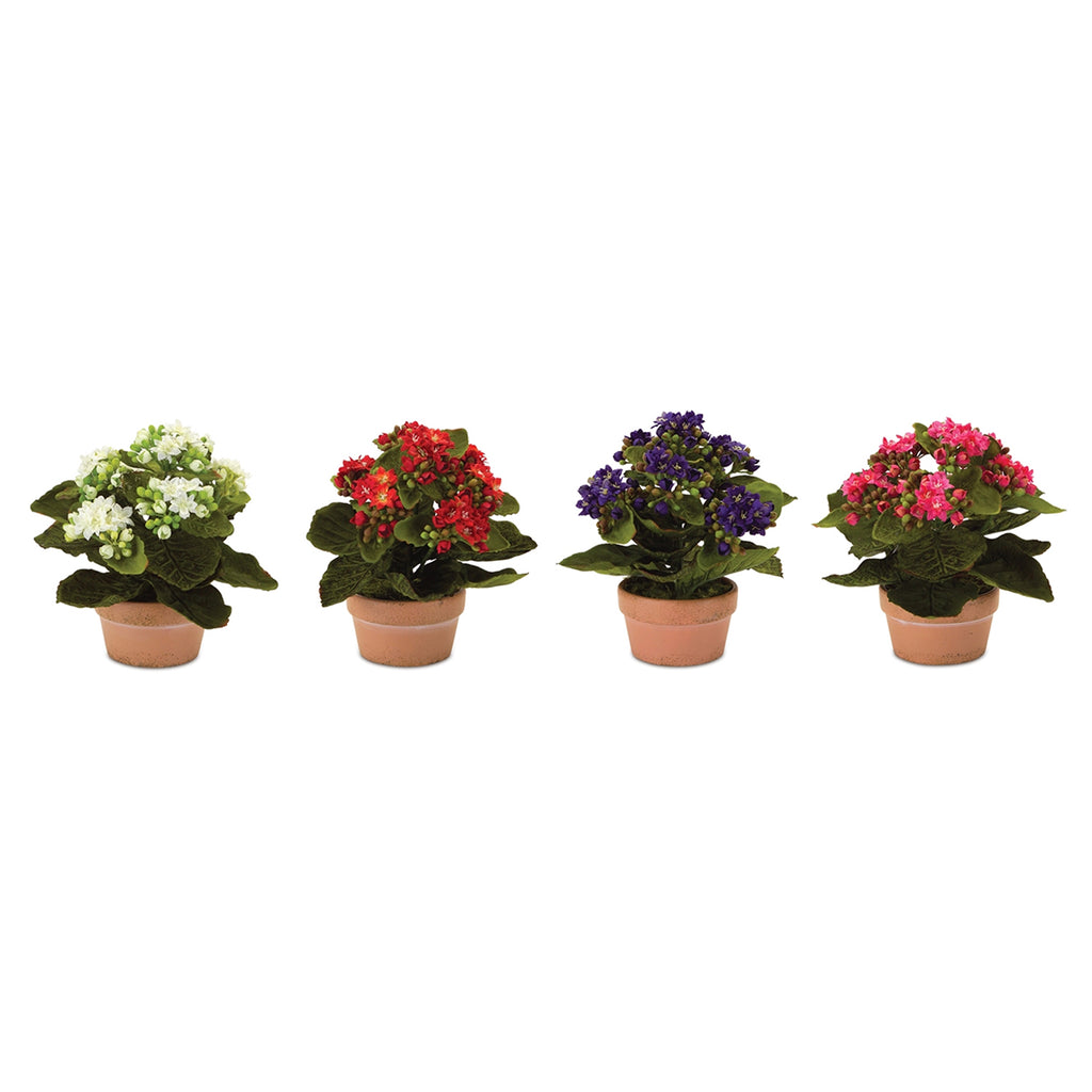 Add a natural pop of color to your home with this beautiful set of Faux Potted Kalanchoe Plant. Featuring four assorted colors of flowers, the beautiful floral arrangemnet paired with the classic terracotta-colored pot makes this piece the perfect addition to your spring decor. The quality polyester leaves and flowers are sure to last for seasons to come.