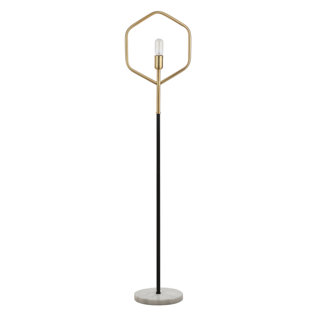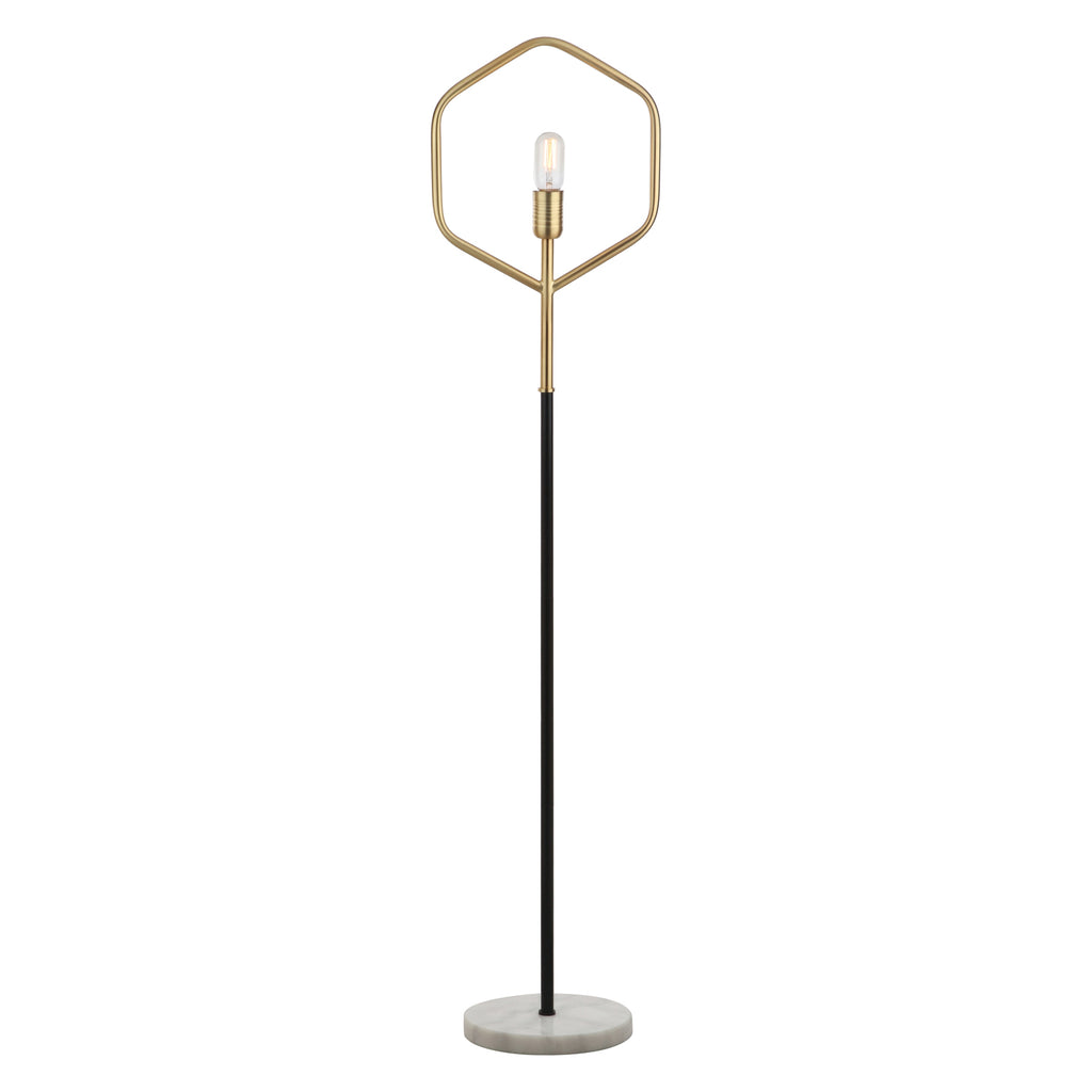 Inspired by chic minimalist style, this contemporary Corydon floor lamp updates any living room. Designed with a marble base that supports its sleek black and polished gold-finished frame, it shimmers in the gentle glow of a single bulb.