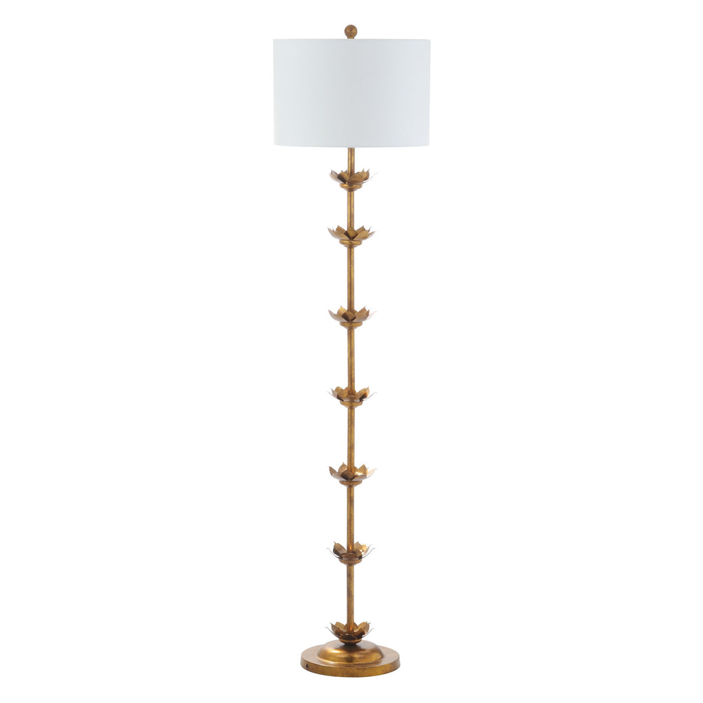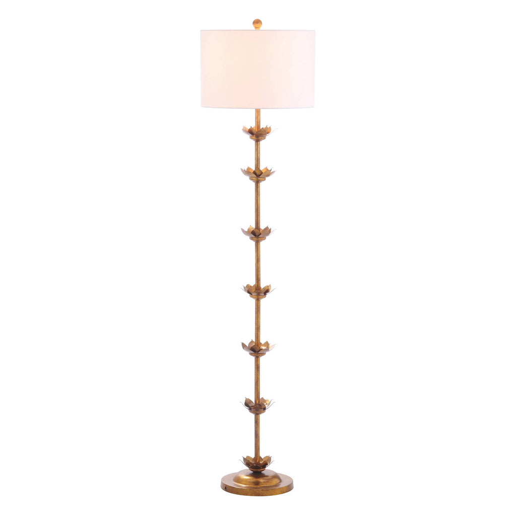 Charming and sophisticated, elevate any living room with a touch of natural beauty with this Fincastle leaf floor lamp. Adorned with finely sculpted leaves, its posh antique gold leaf finish is illuminated by the soft glow of its off-white cotton shade.