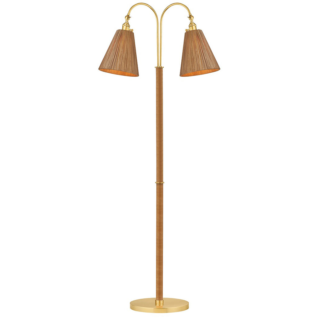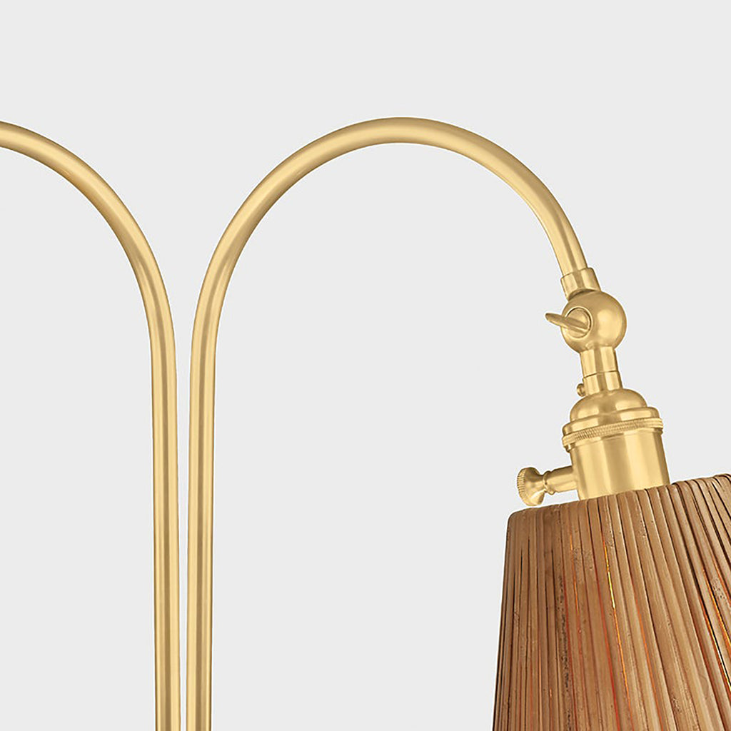 The Hudson Valley Lighting Ruthin family combines swooping metalwork with natural rattan to create playful everyday basics. The floor lamp taps into the trend of two-light silhouettes, adding swivel heads for precise, directional lighting. To match the shades, the lamp’s base is wrapped in rattan. Ruthin is also available as a single-light sconce with a gestural gooseneck arm supporting the shade. Aged Brass metalwork adds a subtle note of shine to these designs.