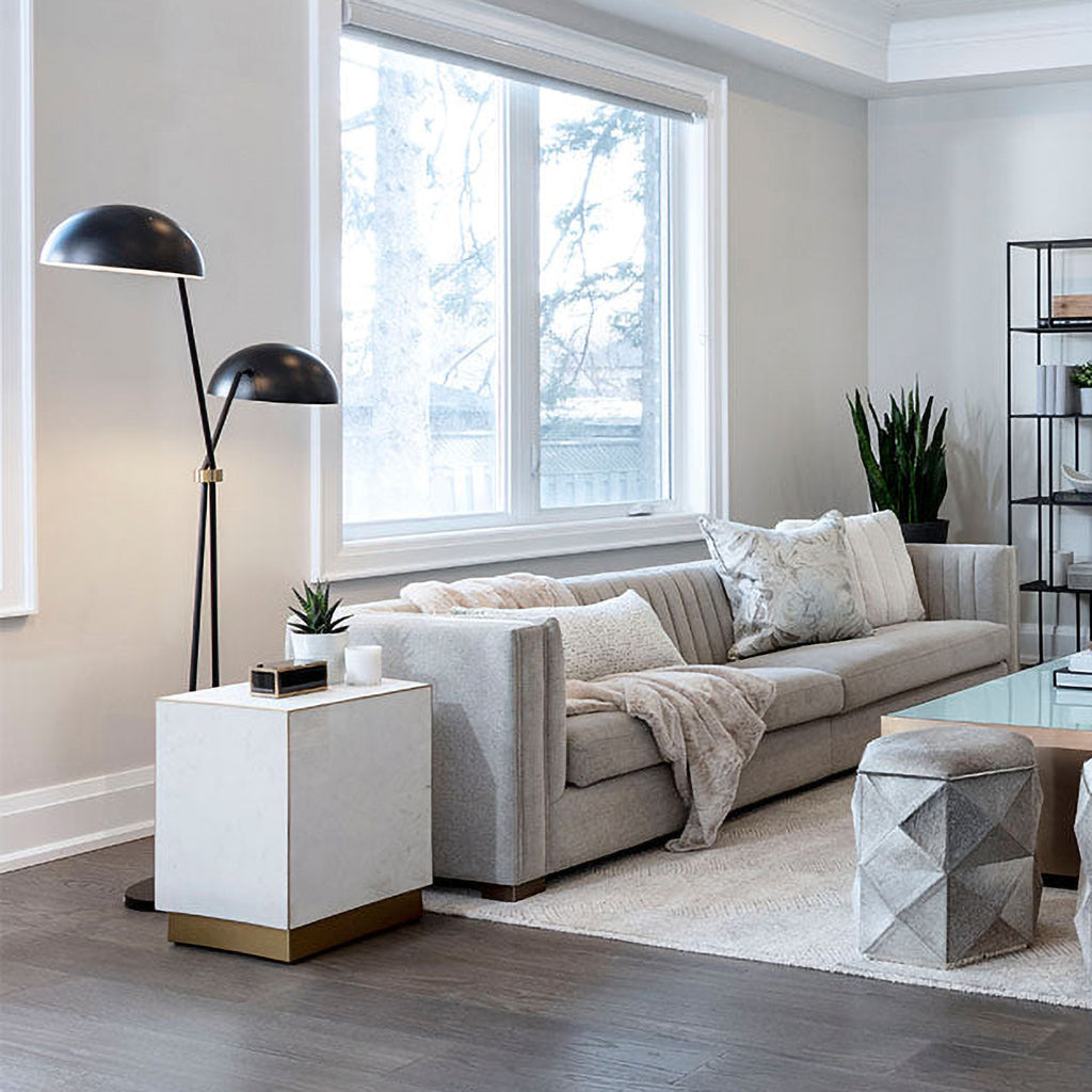 Samples may be available for wood/metal finishes, fabric or rugs.