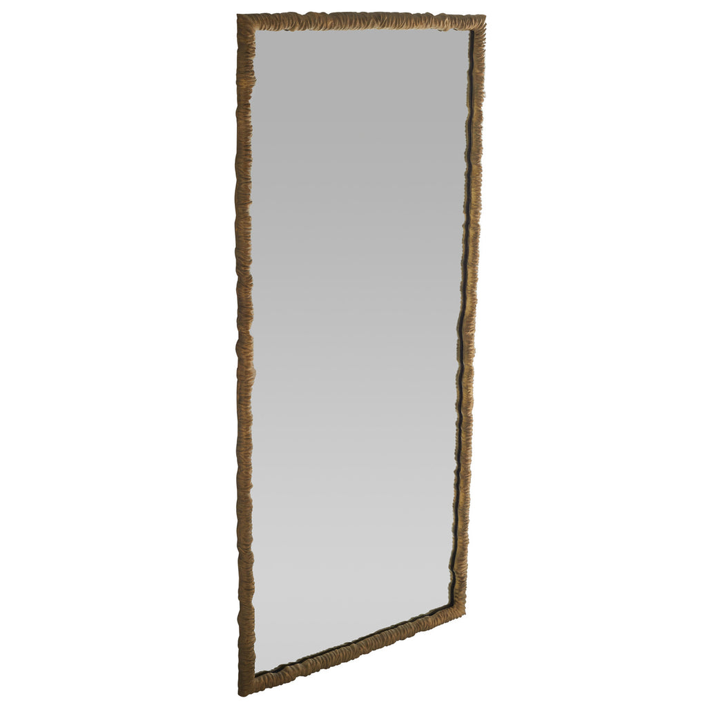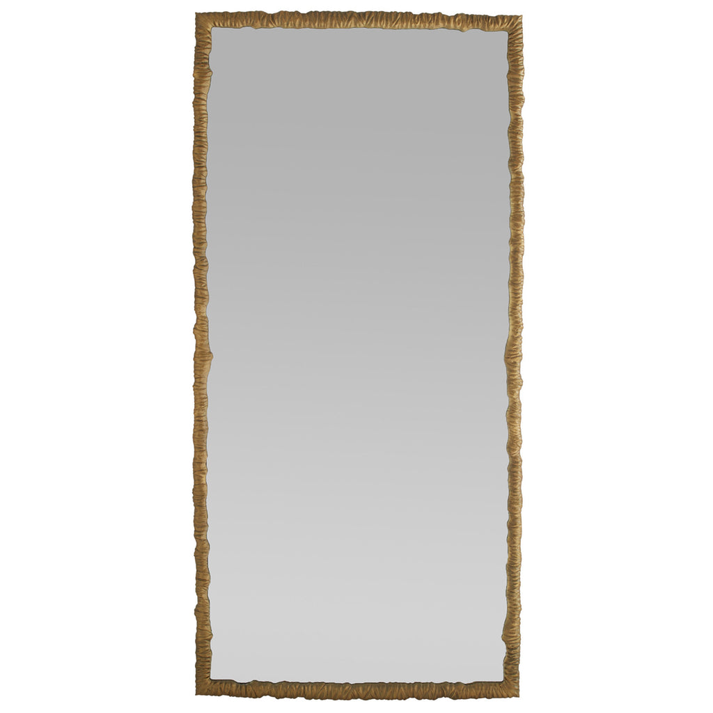 Our supersized floor mirror of antique brass-plated aluminum has a freeform texture reminiscent of twisting vines. Botanical in influence, it can be displayed both vertically and horizontally. Cleat attachment for secure hanging. Finish will vary.