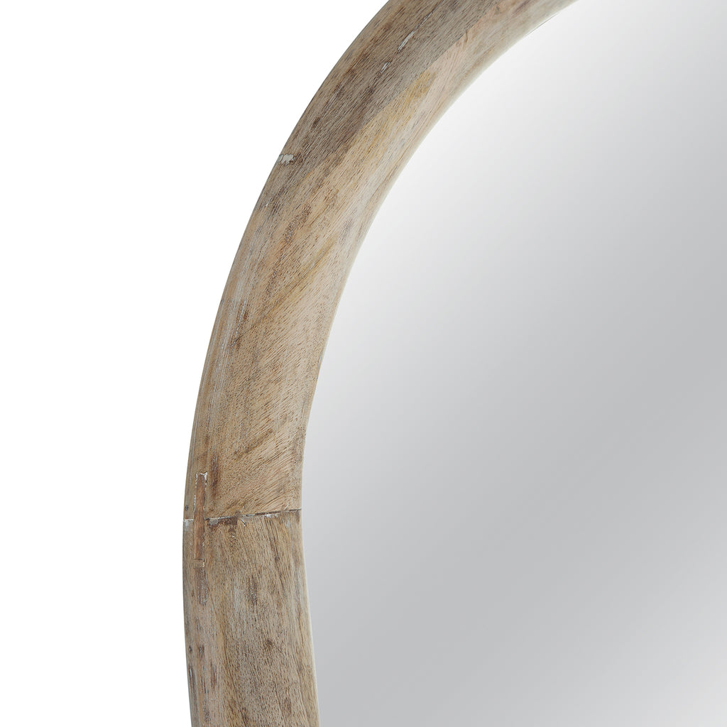The Bay Floor Mirror showcases a gracefully arched design complemented by a natural mango finish, exuding warmth and charm. Its coastal-inspired aesthetic adds a touch of relaxed elegance to any space, seamlessly blending with various decor styles. Crafted with meticulous attention to detail, this mirror effortlessly infuses your space with a sense of coastal tranquility and natural beauty.