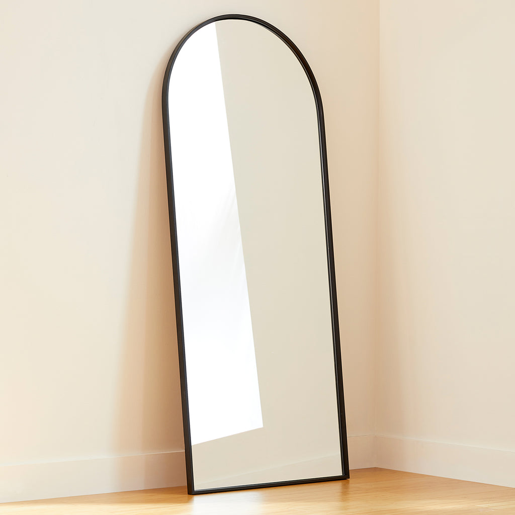 Complimentary to most furniture and d?cor stylings, the modern arched Concord mirror supports a vast majority of interior design projects. This large-scale mirror has a half-inch reveal and 1 1/4 inch depth. The Concord mirror is available in an option of brass or matte black.