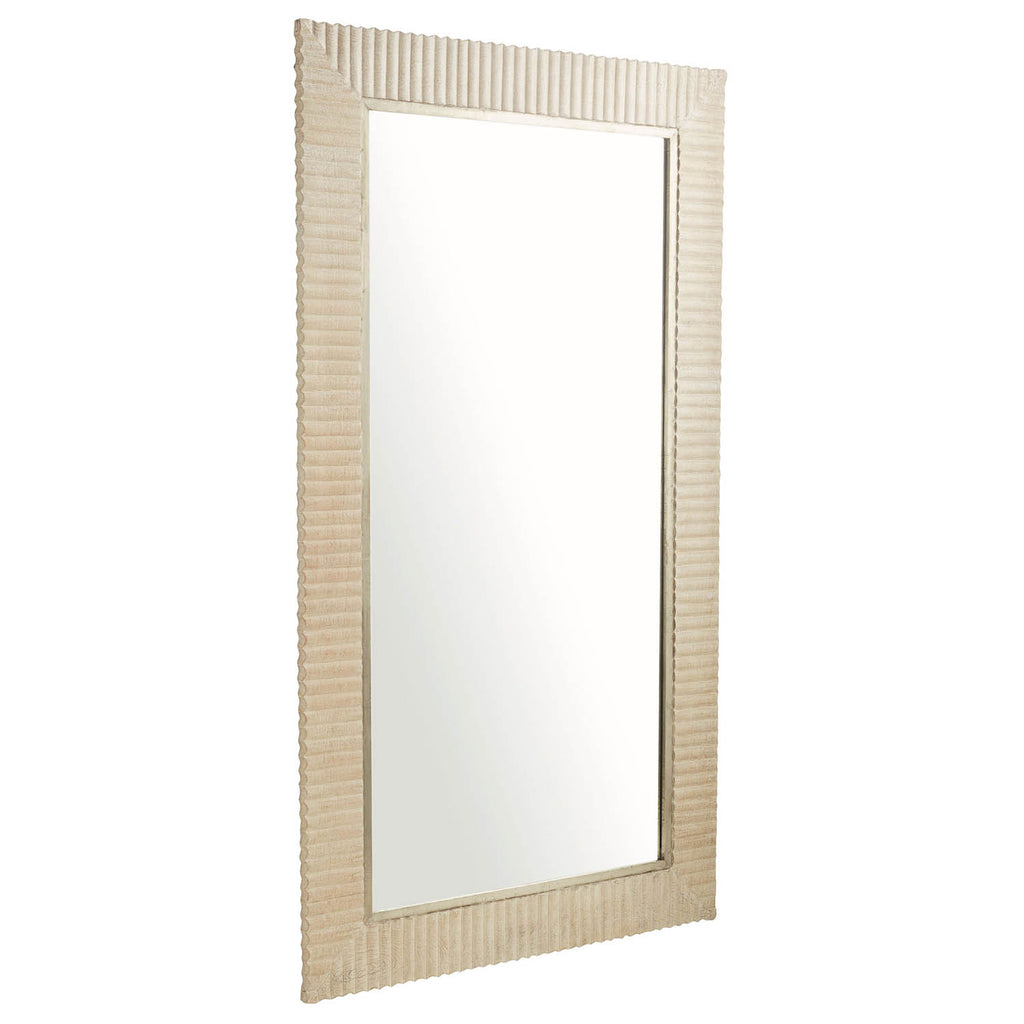 The Estriada family’s imaginative combination of cerused Mango wood and white metal gives the collection a signature feel. Hand-carved fluting is artfully applied to Mango wood frames surrounding a crisp mirrored glass center. Hang over a bathroom countertop or in a living room to add warmth and depth. Available in three options.